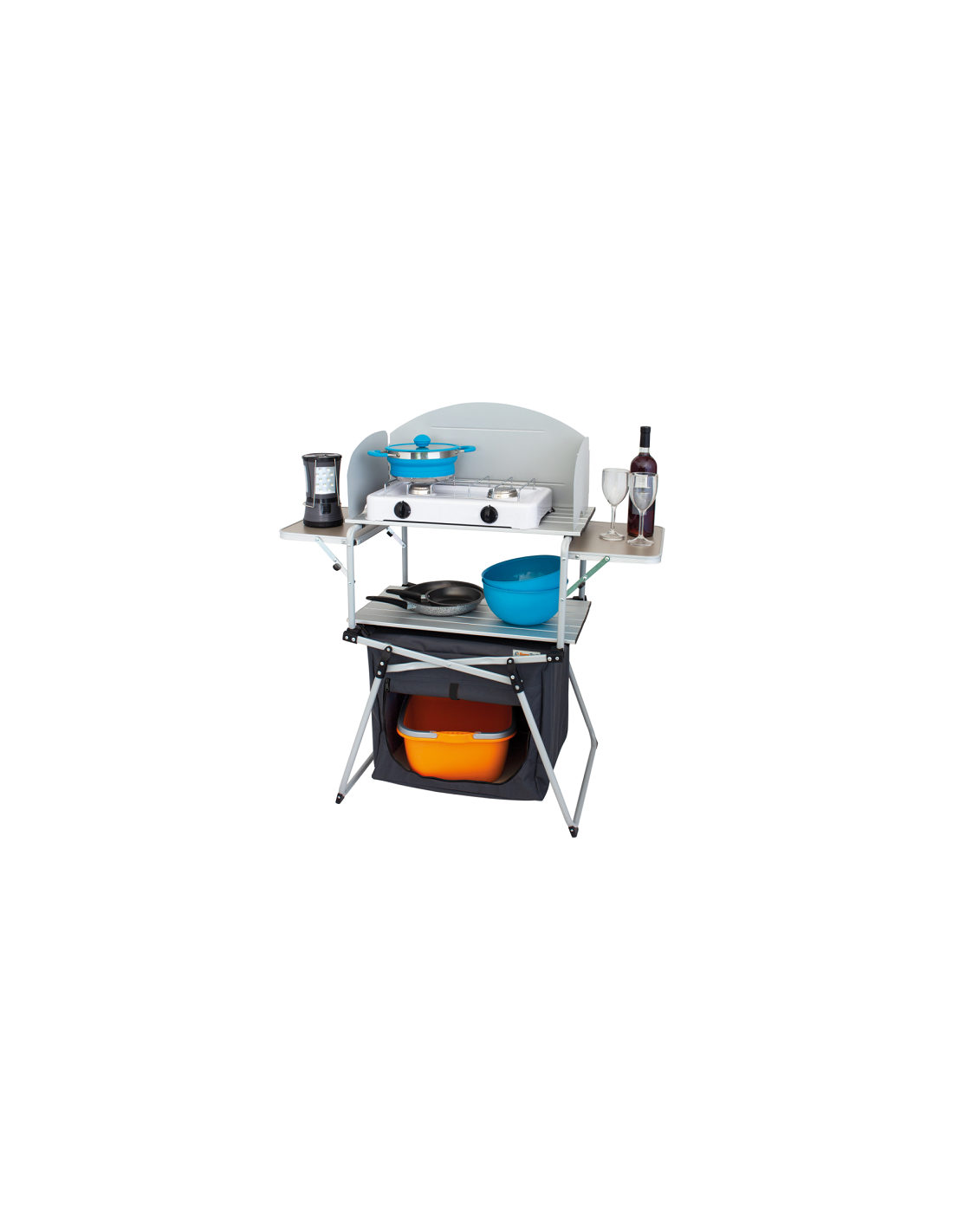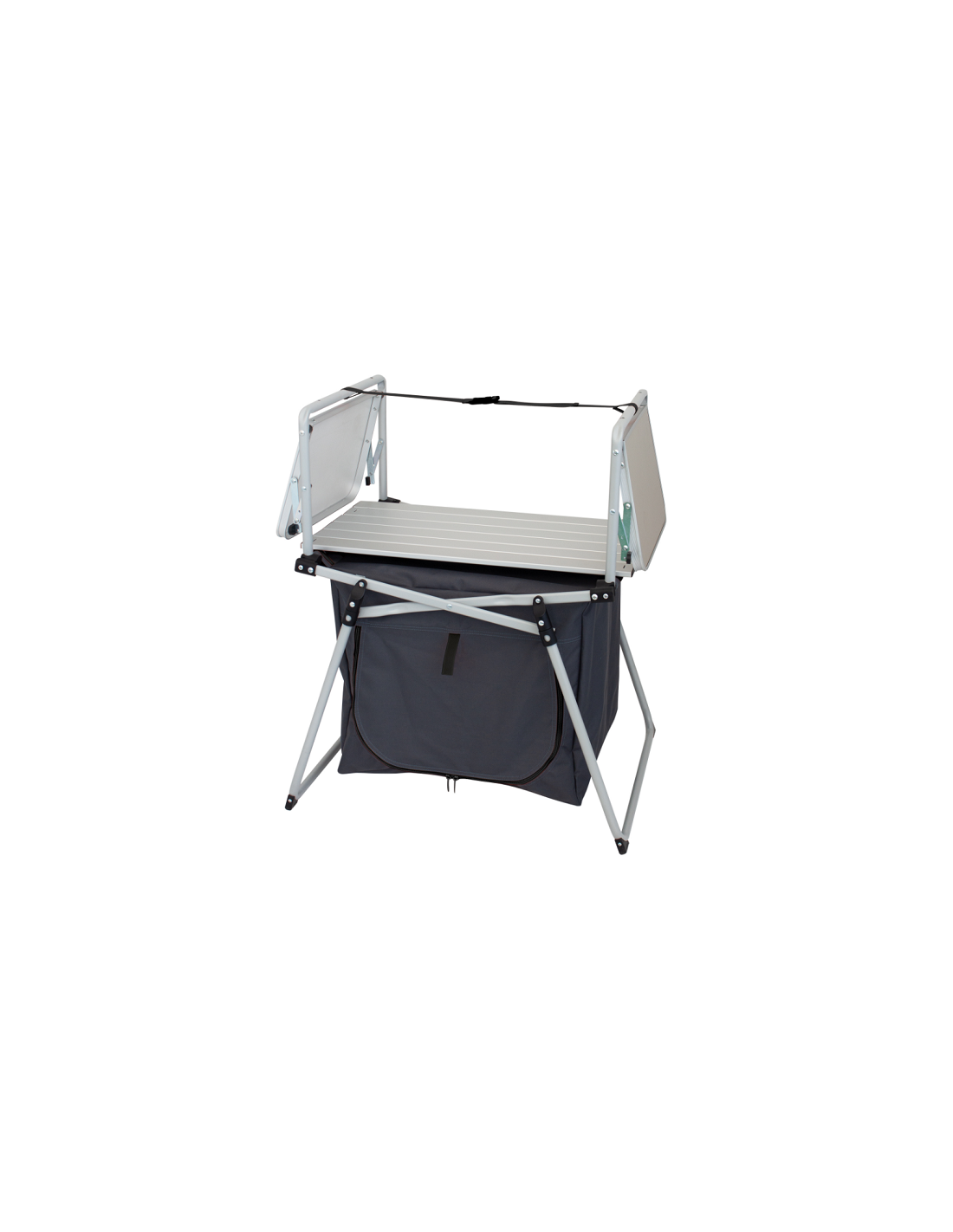 El Mueble Cocina Camping Midland Etna con fregadero, hecho de aluminio resistente y de diseño plegable, es la elección perfecta para cocinar al aire libre en campings, caravanas y campers.