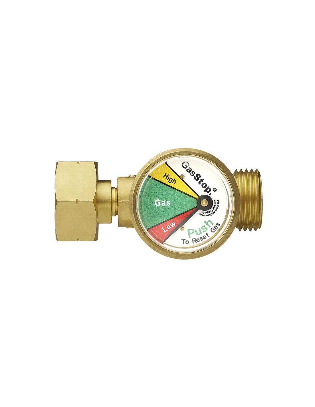 -Indicador de botella de gas: el GasStop está equipado con un práctico indicador, el cual le deja ver exactamente cuando la botella de gas está vacía.