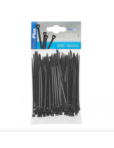 En stock Camping Pack de bridas en color negro. 50 unidades 00 ProPLus 1,26 € ¡DISPONIBLE EN 8 MEDIDAS!