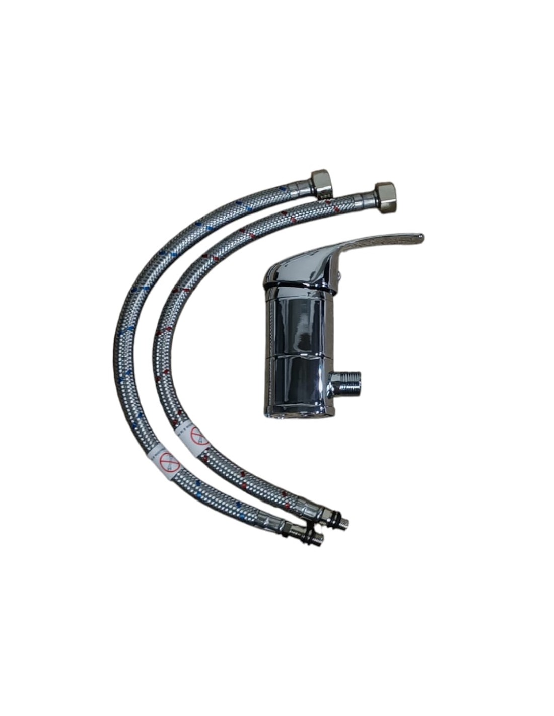 Se suministra con un par de mangueras de alimentación de acero inoxidable equipadas con conectores F 3/8 con juntas de filtro y un kit de fijación.