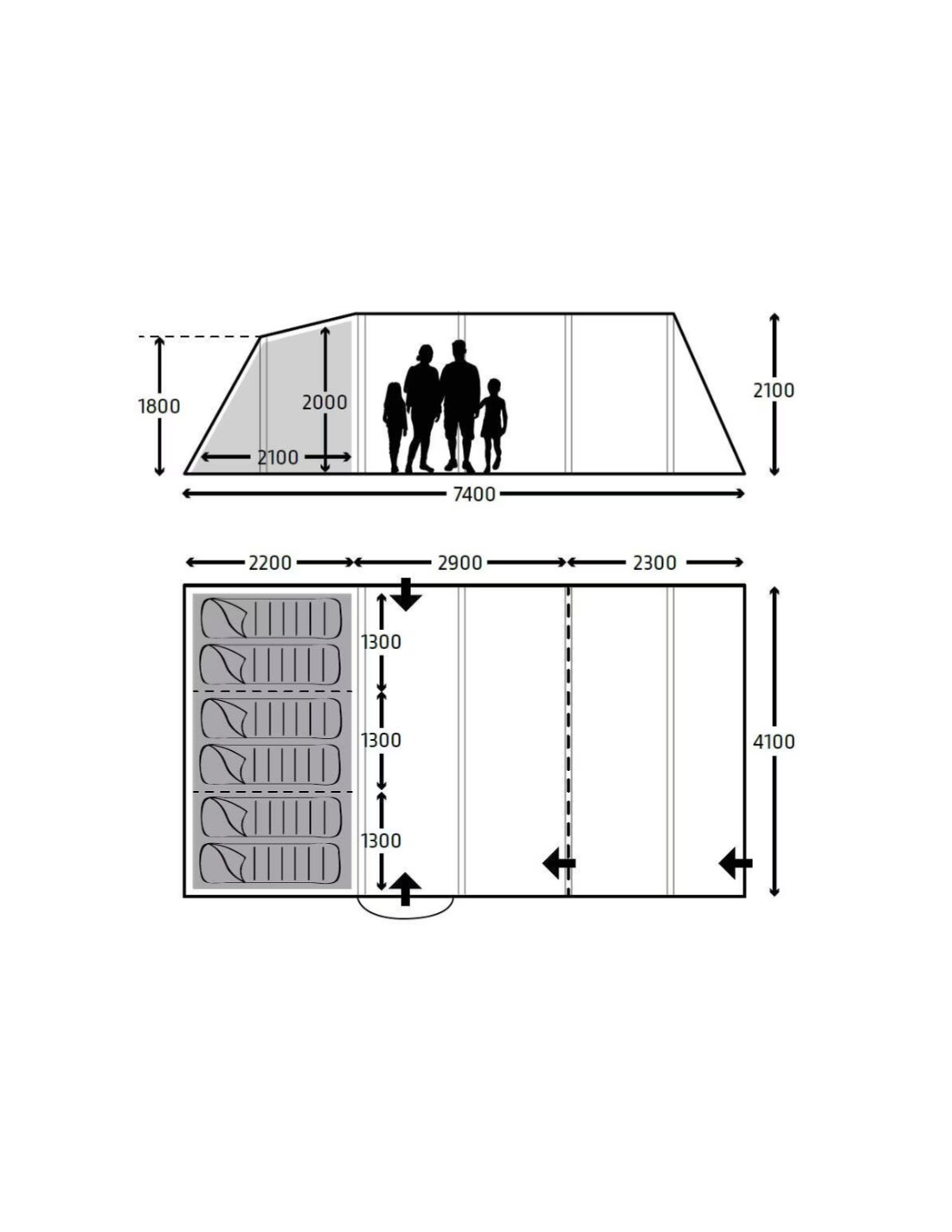 Volumen de suministro: tienda de campaña, tienda interior, bomba, bolsa de transporte, barra de dosel lateral, paquete de clavijas, instrucciones de montaje