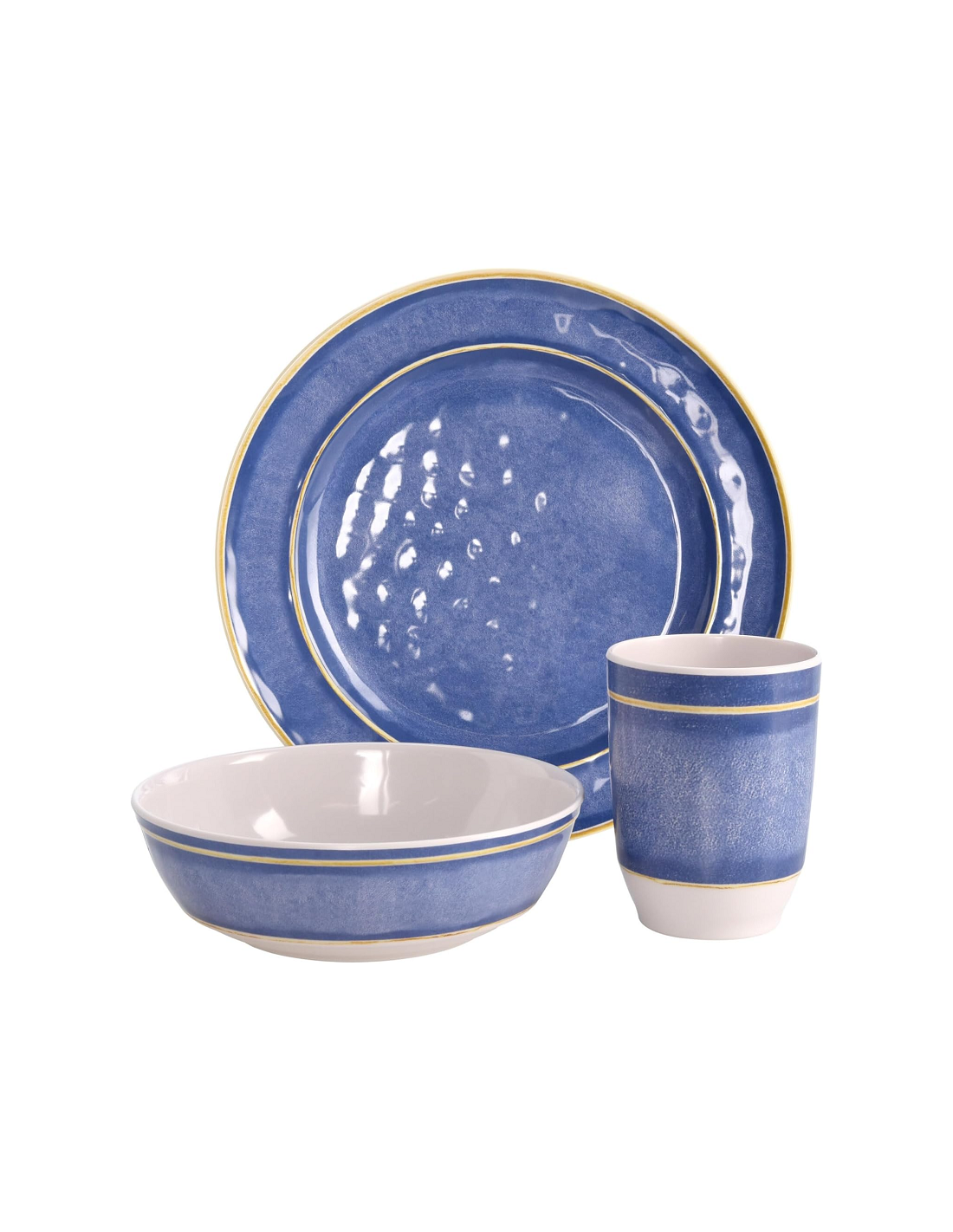 Juego de Vajilla de 16 Piezas Mix Blue Melamina Azul. Bo-Camp