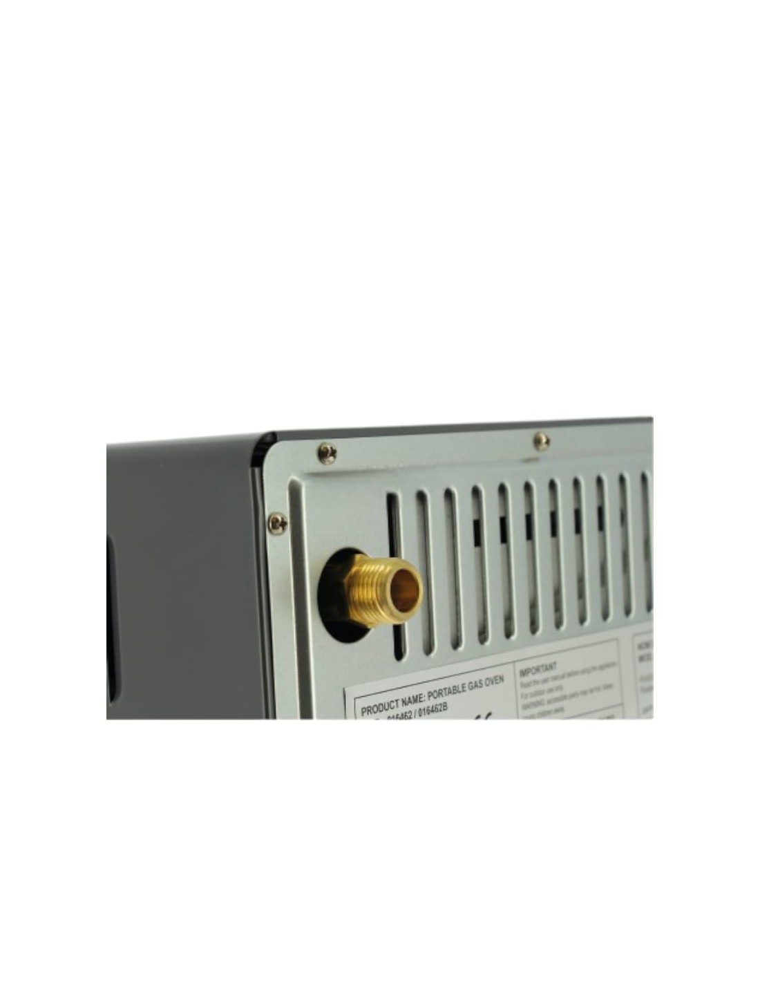 Temperatura máx.: 300°C. temperatura máx.: 300°C. Potencia: 1200 vatios. Consumo de gas: 85 g/h. Dimensiones (An x Pr x Al): 52 x 29,5 x 28 cm. Dimensiones interiores del horno (An x Pr x Al): 41 x 28 x 20 cm. Peso (con accesorios): 8,8 kg. Presión: 30 mbar.