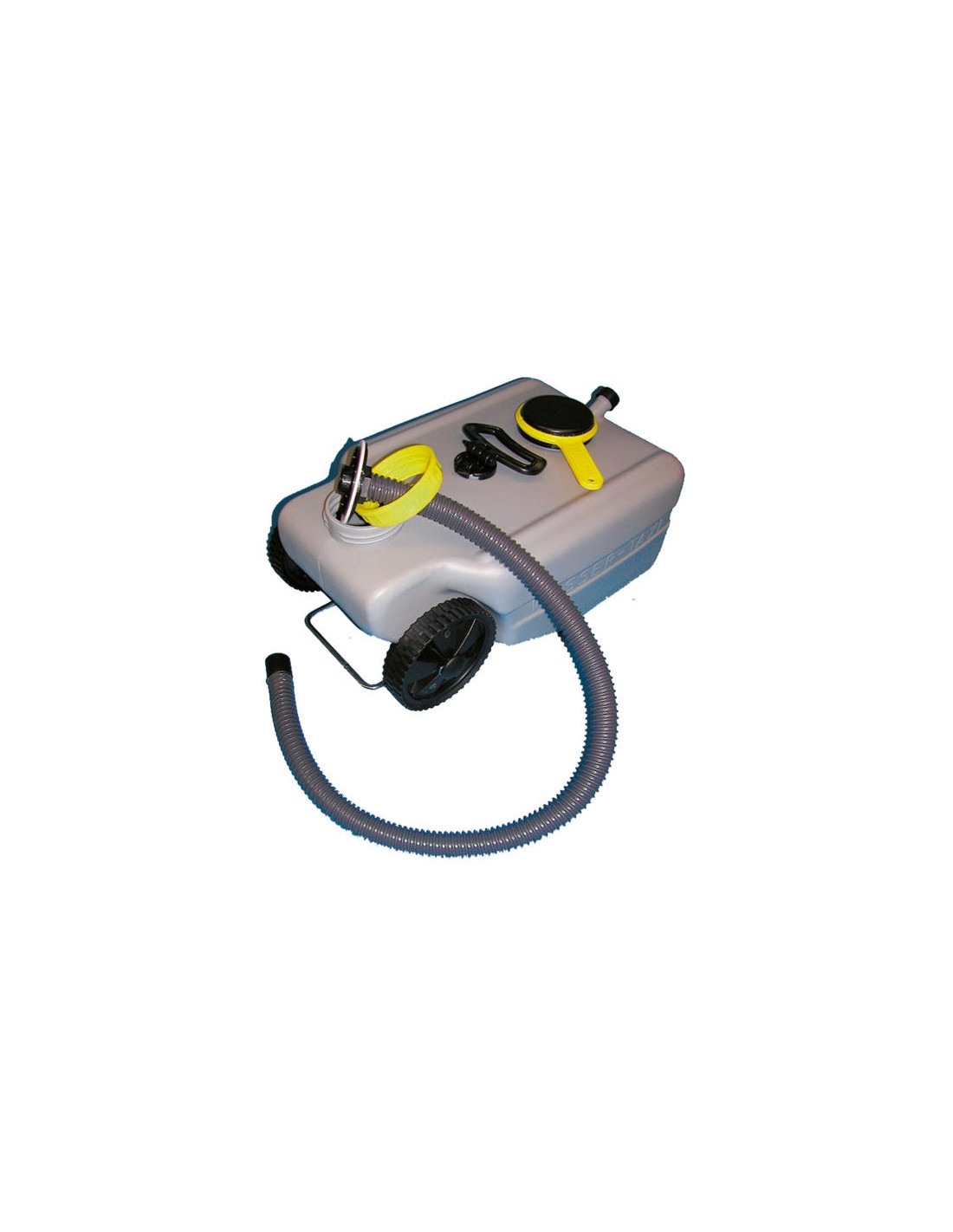 Las ruedas del depósito facilitan el traslado para la evacuación de las aguas residuales.