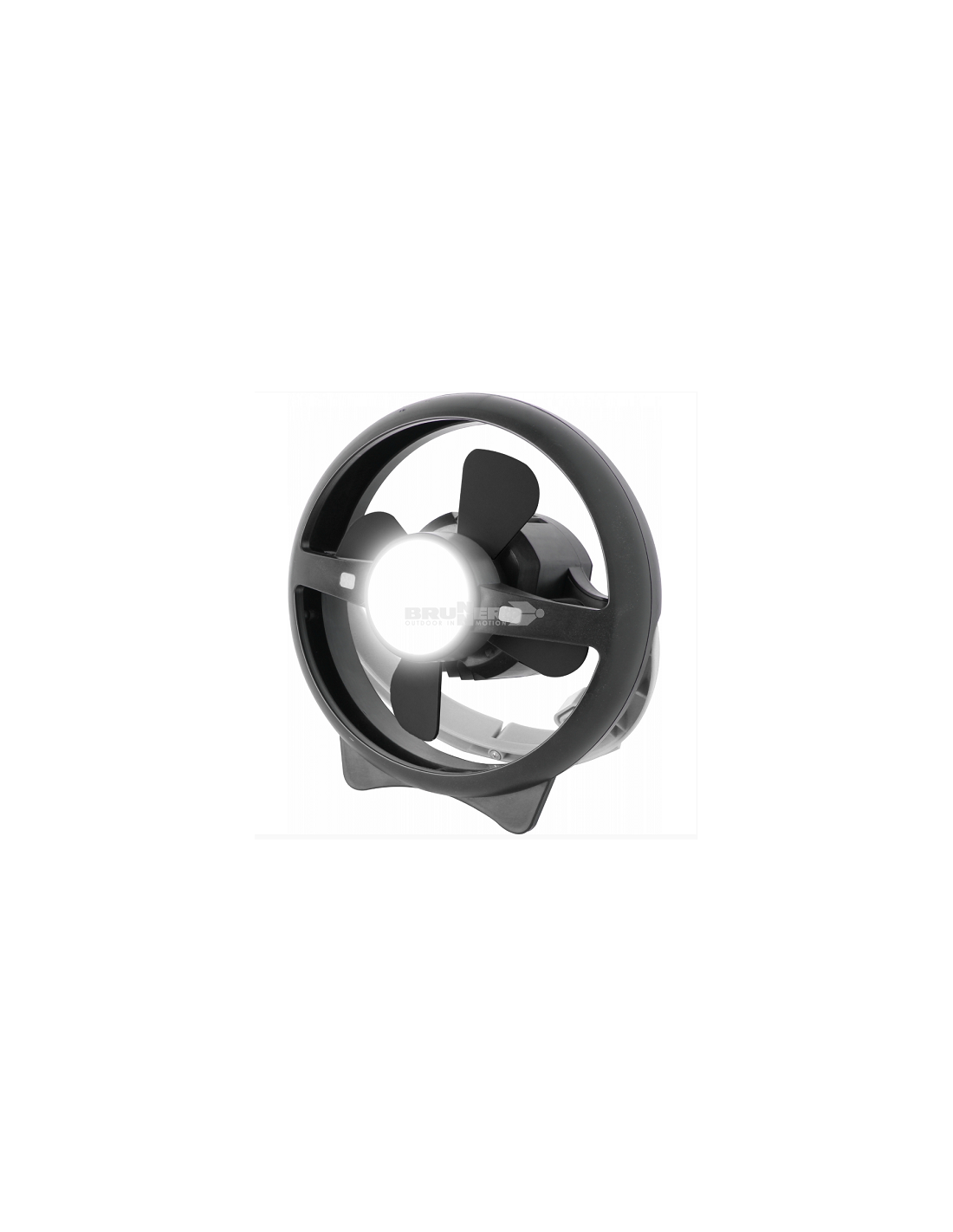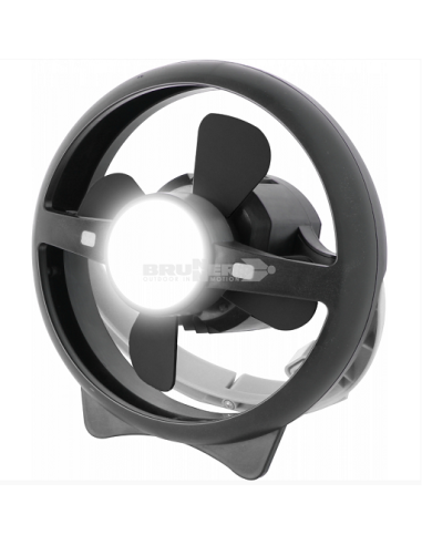 Esta práctica combinación de lámpara/ventilador recargable suministra simultáneamente una brillante luz LED y la fresca brisa de un potente ventilador de 4 hélices.
