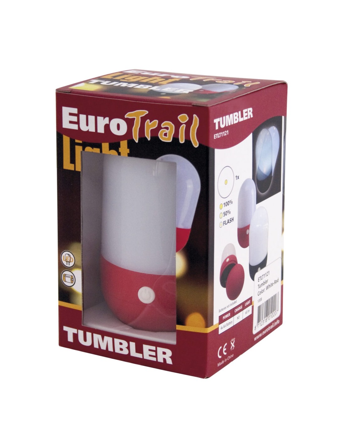 Lámpara de camping que siempre se inclina hacia atrás, debido al peso en la parte inferior.