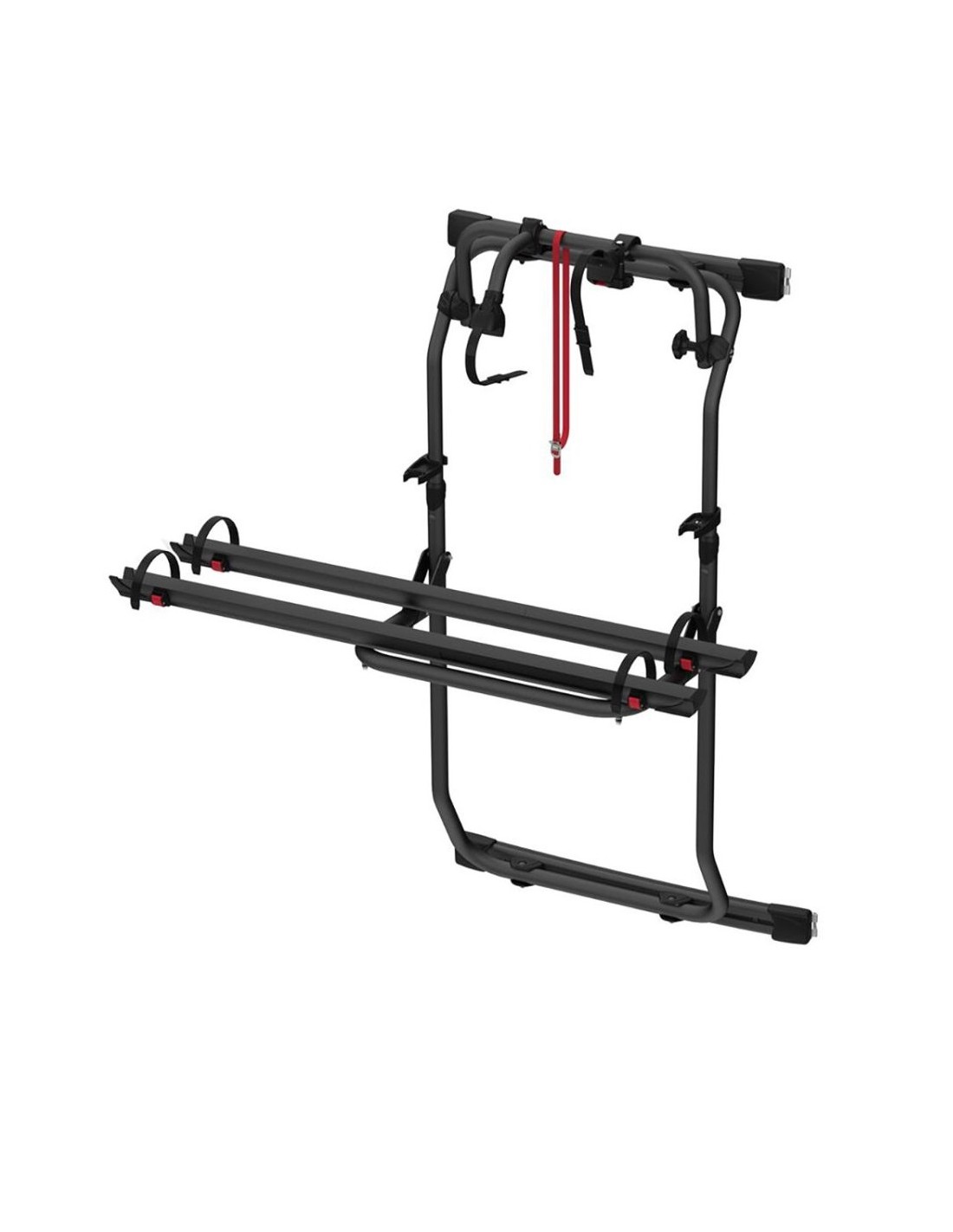 El portabicicletas Fiamma 200 DJ Ducato para 2 bicicletas se instala en la puerta trasera derecha, quedando libre la puerta izquierda por si se quiere montar una escalera Deluxe para acceder al techo del vehículo.