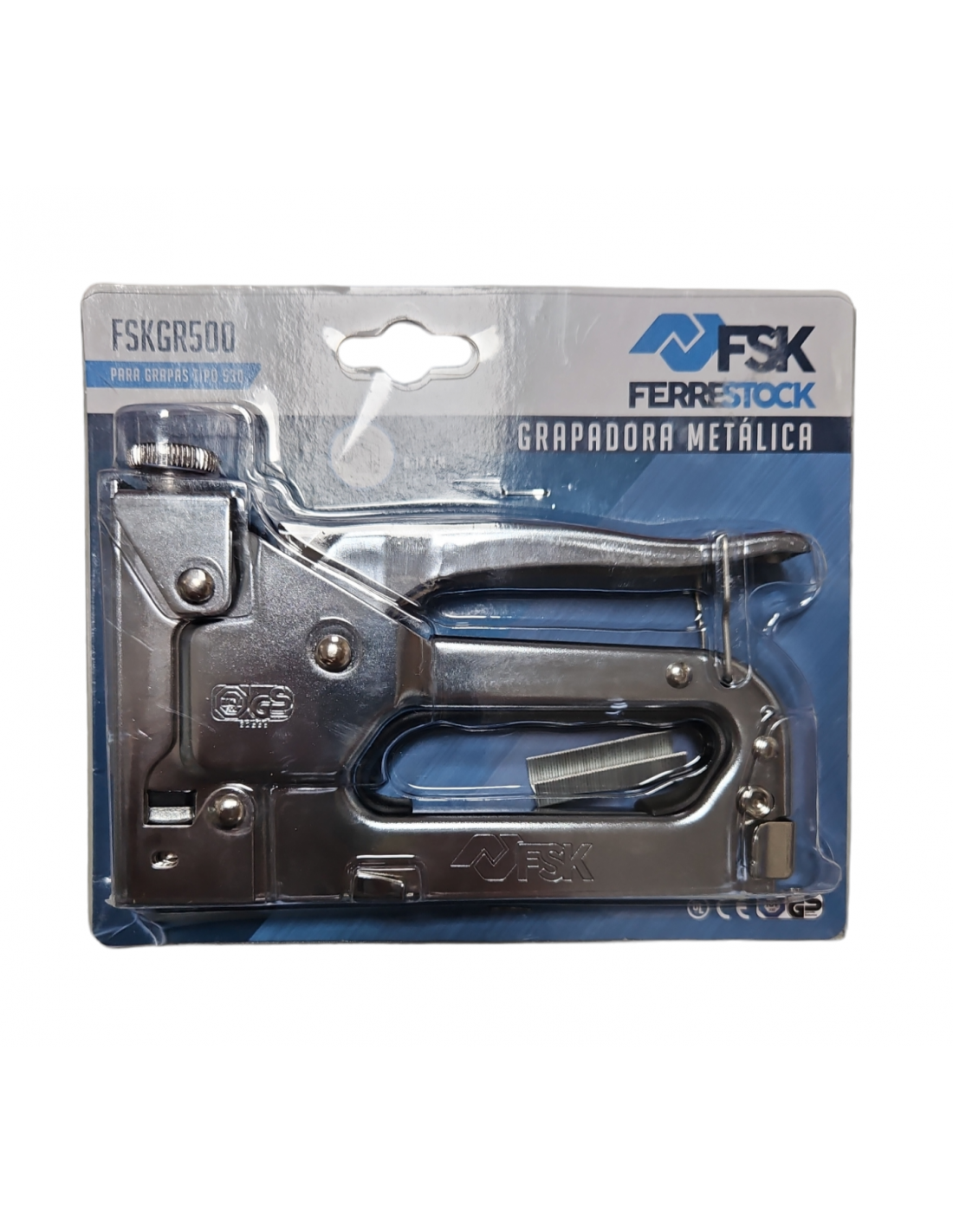 Grapadora metálica de acero cromado FSKGR500 para grapas cuadradas de 6 a 12mm. Para grapas tipo 530.