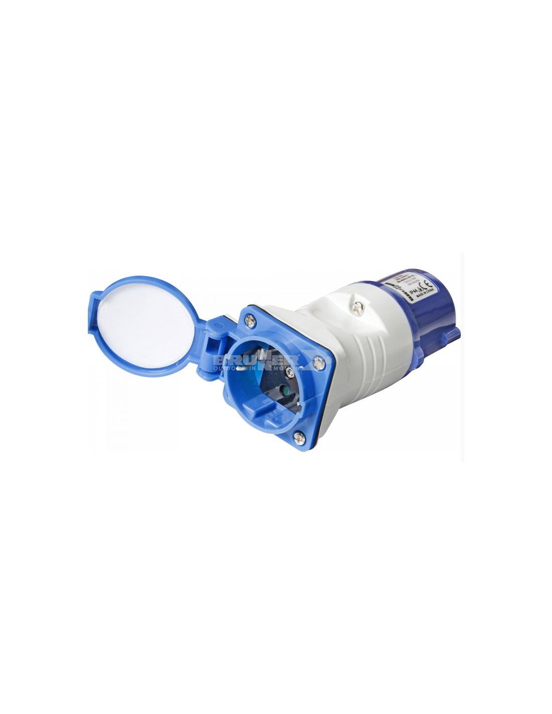 Adaptateur mâle Cetac avec extrémité dans une prise femelle 220V avec couvercle.