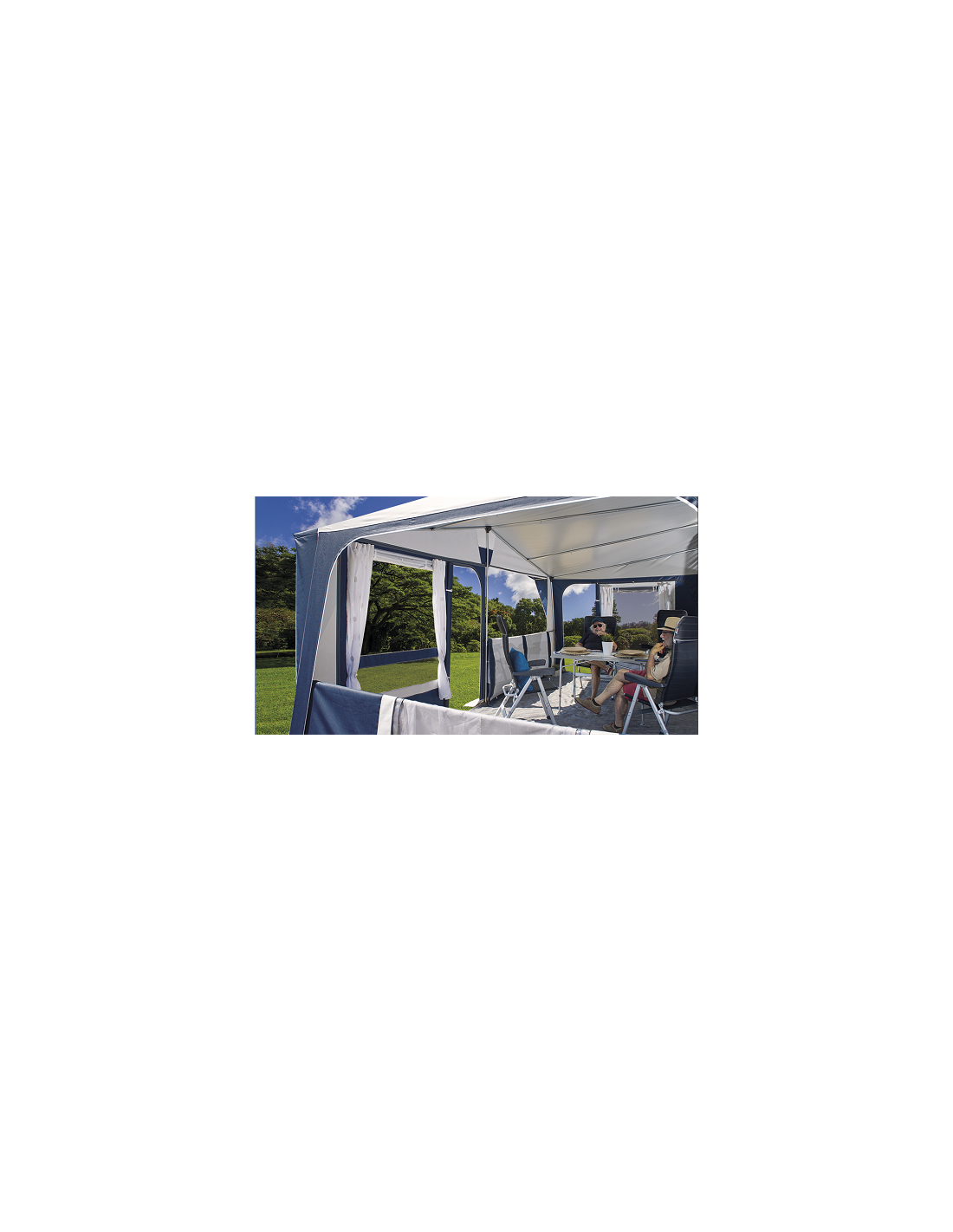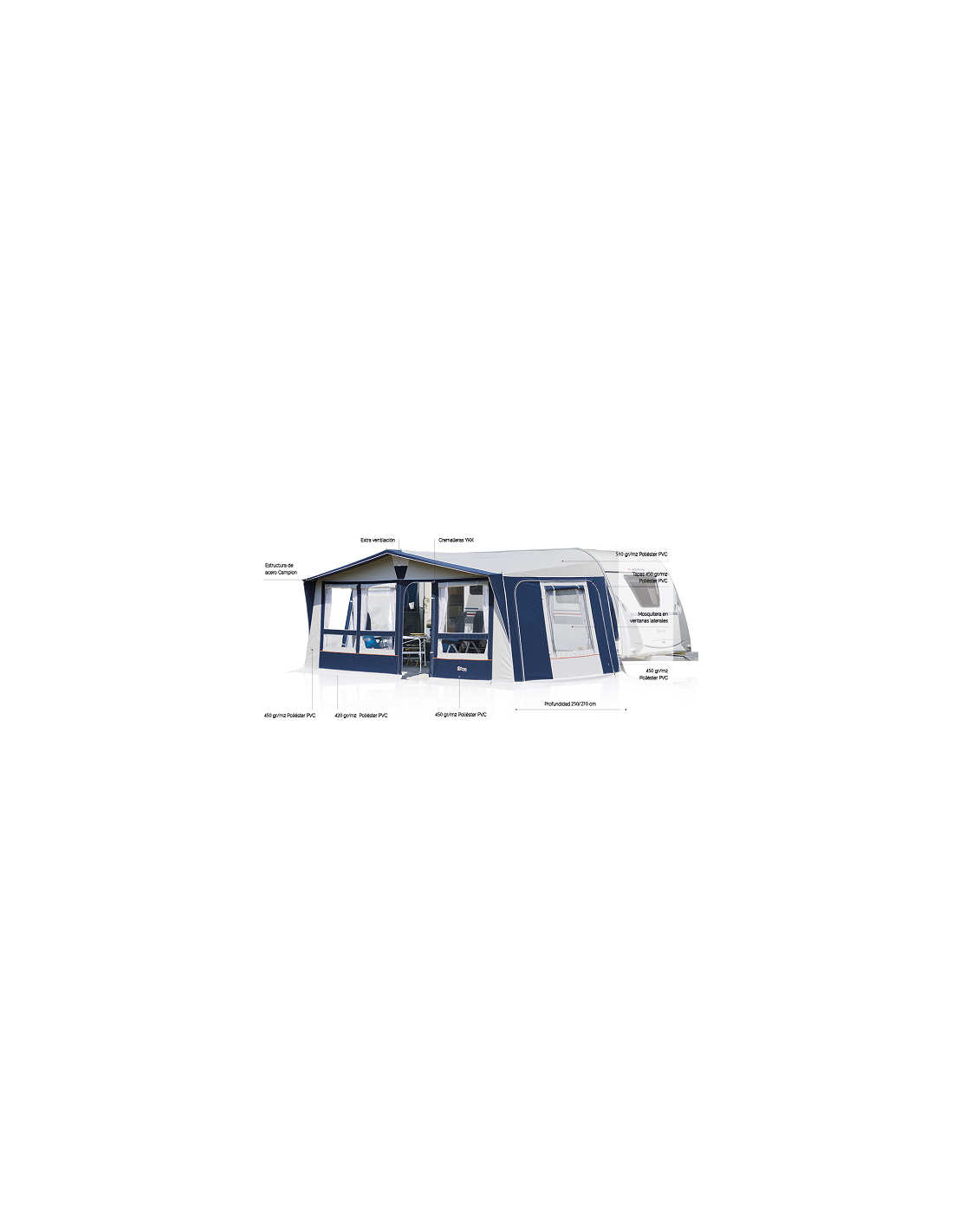 Façade entièrement réalisée en PVC polyester longue durée, caractéristique qui lui confère une grande résistance aux intempéries et une grande facilité de nettoyage. Disponible en deux versions : 250 et 270 cm de profondeur.