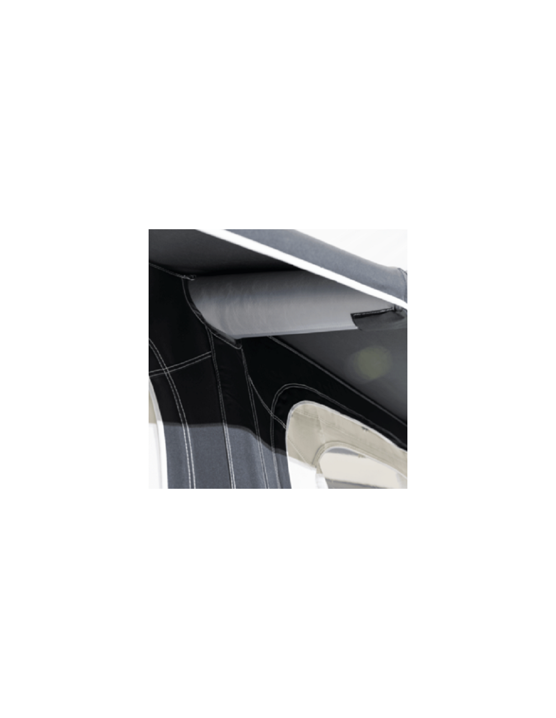 Les panneaux avant peuvent être retirés via des fermetures à glissière pour réduire le poids et ouvrir l'auvent.