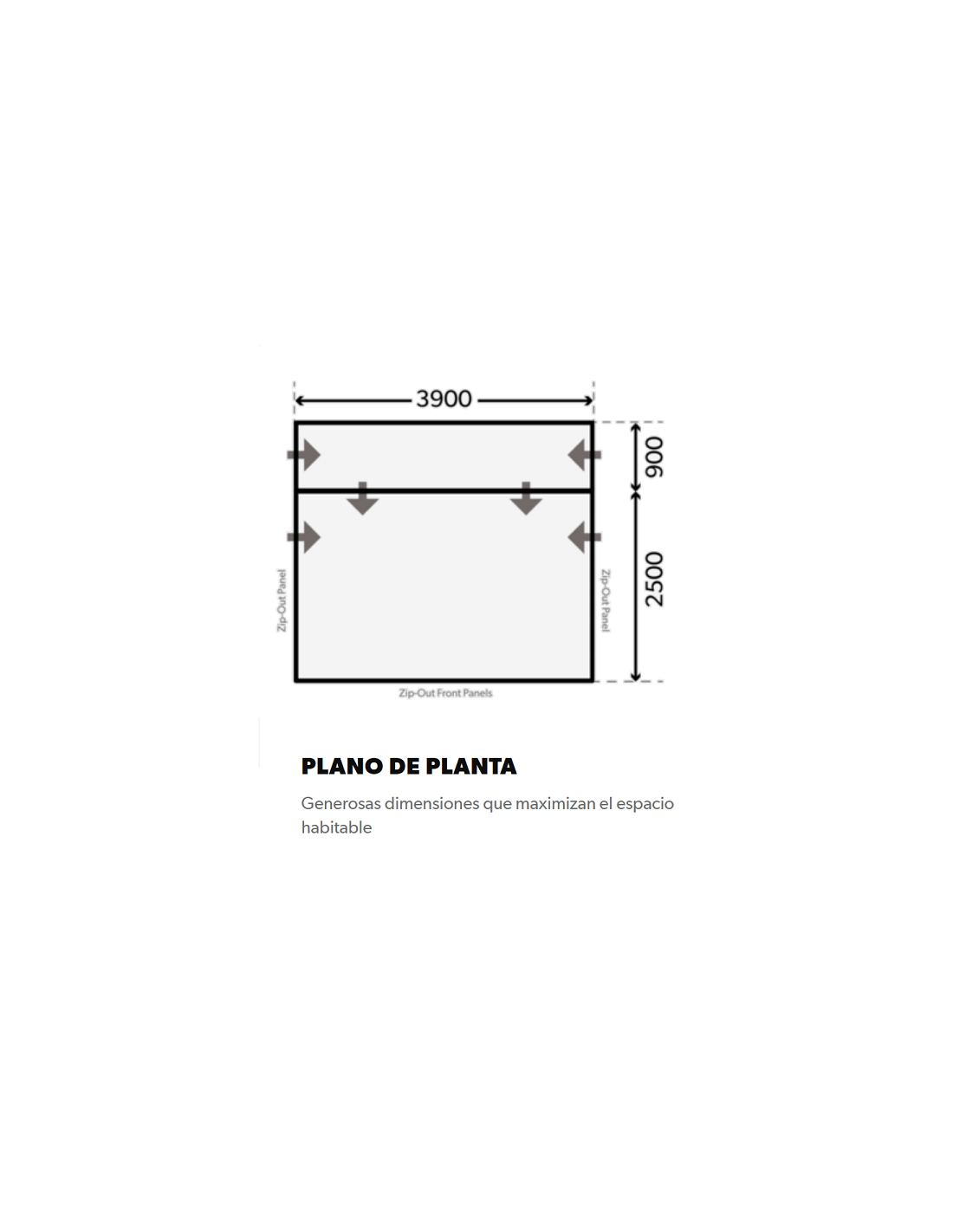 Les panneaux avant peuvent être zippés pour réduire le poids et ouvrir l'auvent.