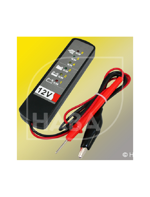 Le niveau rouge inférieur indique que la tension de la batterie est de 11,5 V ou moins, il indique que la tension de la batterie est faible. Le deuxième niveau, de couleur jaune, indique que la tension est de 12V et que la batterie n'est pas complètement chargée. Un troisième niveau, vert, indique une tension de 12,6V et que la batterie est complètement chargée. Le quatrième niveau, jaune, indique que la tension de l'alternateur est de 13,2 et qu'elle est trop basse. Le cinquième, vert, indique que la tension de l'alternateur est de 14,5 V et que c'est une bonne tension. Le sixième niveau, rouge, avec une tension alternative de 15,5 V ou plus, indique que la tension est trop élevée.