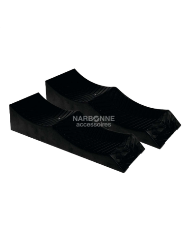 Conçues pour le stationnement longue durée et l'hivernage, ces cales éliminent l'effet de faux-rond des pneumatiques grâce à leurs 2 niveaux de stabilisation avec des surfaces d'appui incurvées.