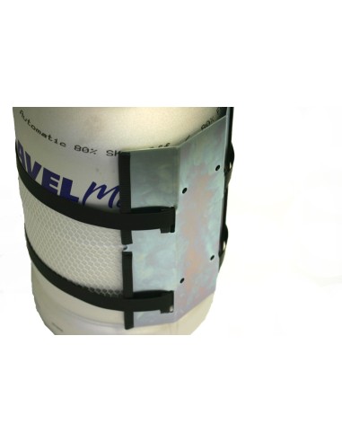 Les sangles de serrage s'ouvrent et se ferment à l'aide de deux vis à six pans creux, ce qui permet de retirer rapidement la bouteille de gaz à tout moment.