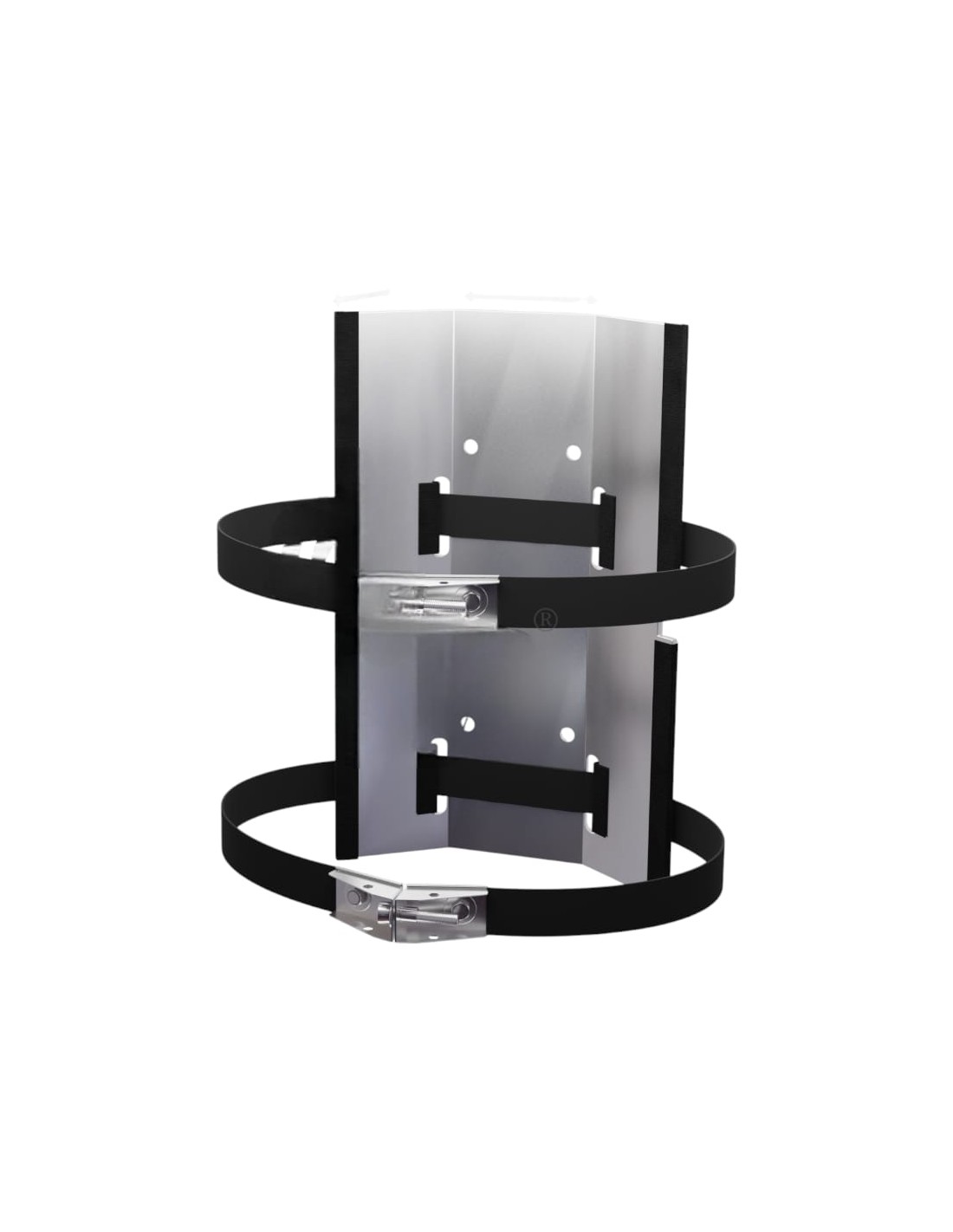La plaque de montage et les sangles de serrage sont en acier inoxydable de haute qualité. Les sangles de serrage sont également recouvertes de caoutchouc.