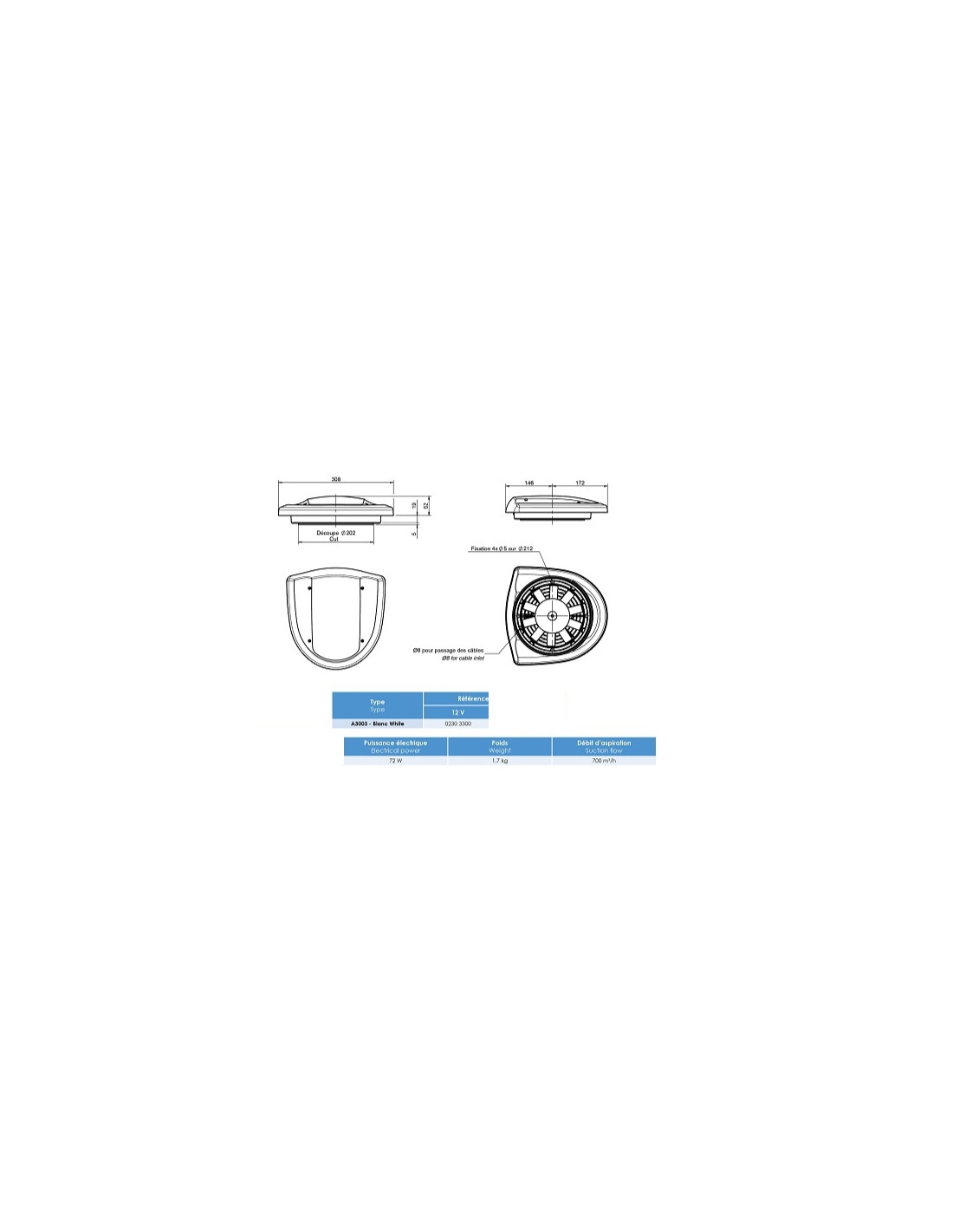 Extracteur de toit aérodynamique Siroco avec couvercle ABS 3003 12V