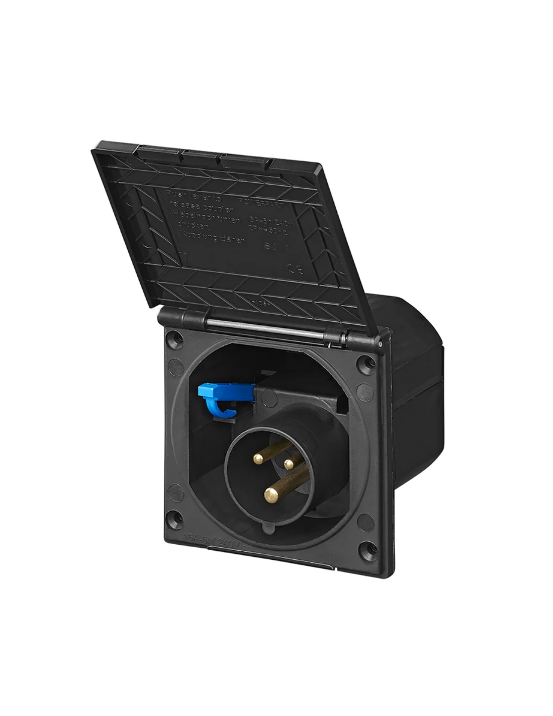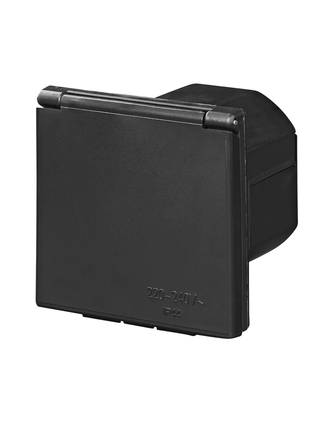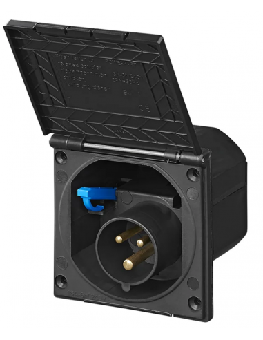 Prise extérieure 16A/230V avec couvercle à charnière.