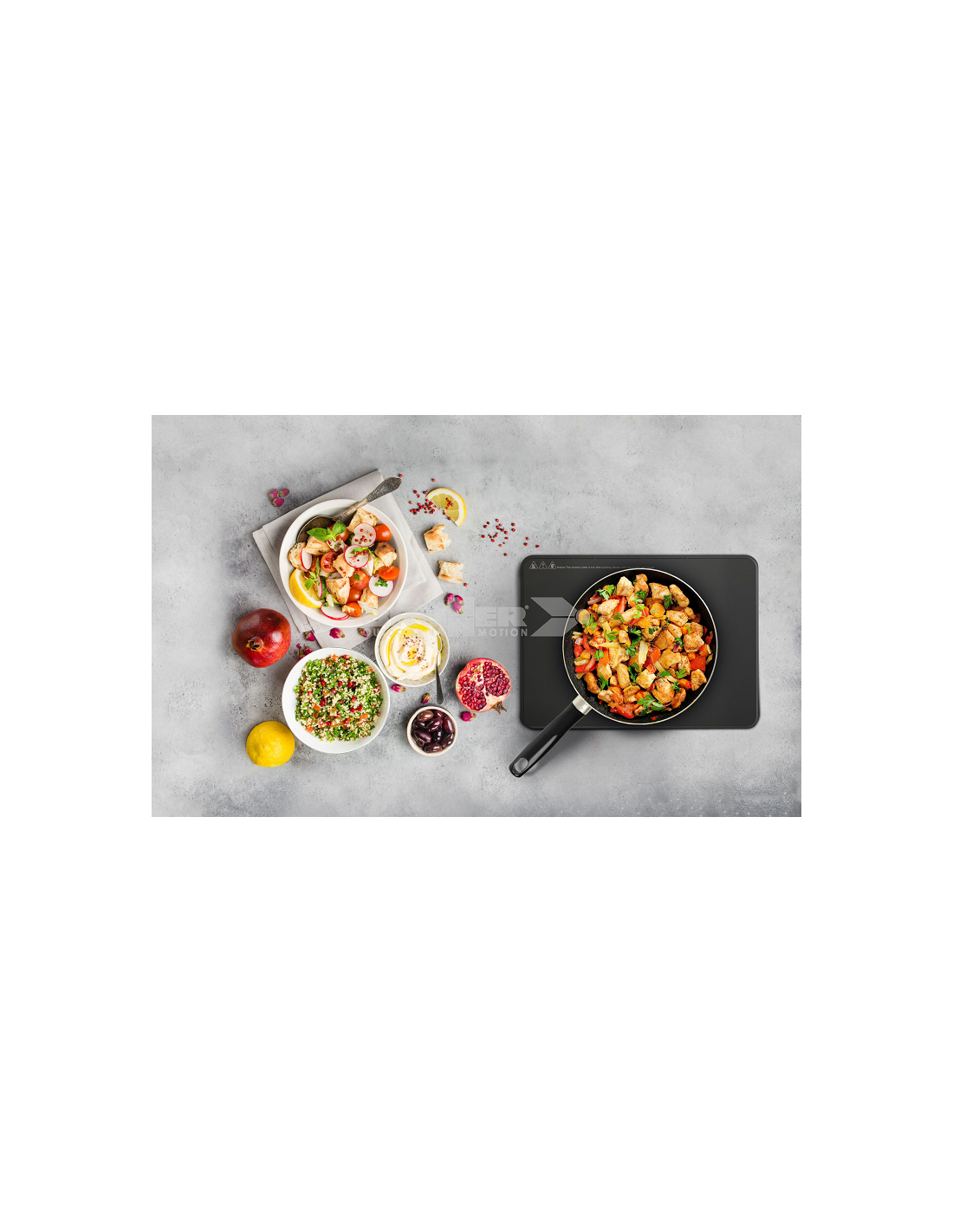 Construction solide et design moderne avec corps en PP résistant à la chaleur et surface de cuisson en vitrocéramique à haute résistance.