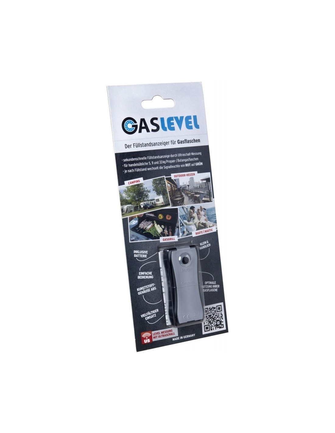 L'indicateur universel GASLEVEL® de Gaslock est l'assistant parfait pour le camping, le barbecue, l'artisanat et pour une utilisation sur les appareils de chauffage extérieurs à essence. Indique rapidement le niveau de remplissage des bouteilles de gaz propane de 5 kg, 11 kg et 33 kg courantes dans le commerce.