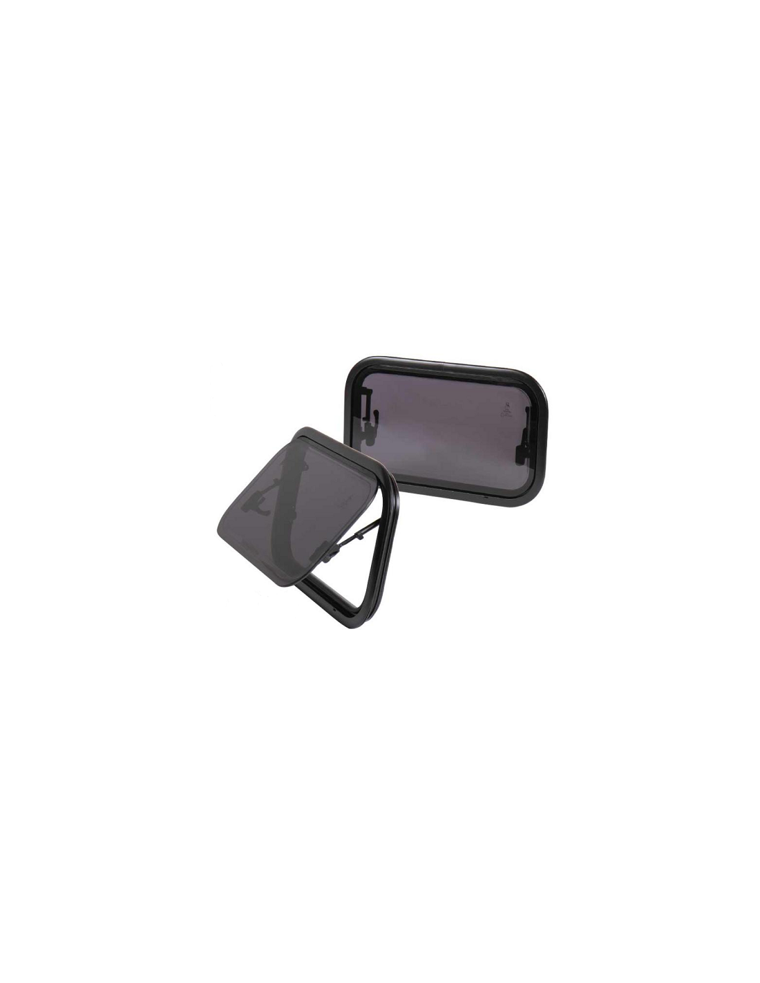 Double vitrage acrylique plat, teinté et bombé vers l'intérieur.