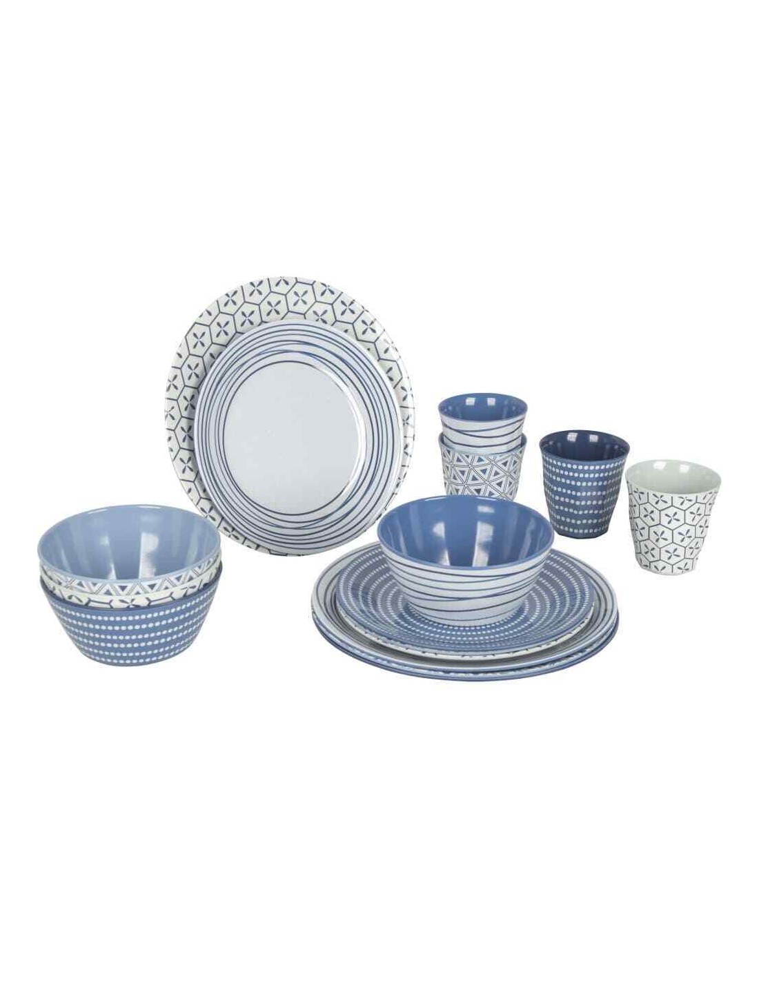 Cet ensemble de vaisselle luxueux et moderne Bo-Camp 16 pièces Mix Blue est composé à 100% de mélamine.