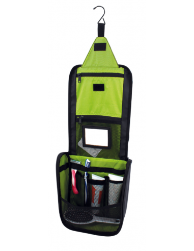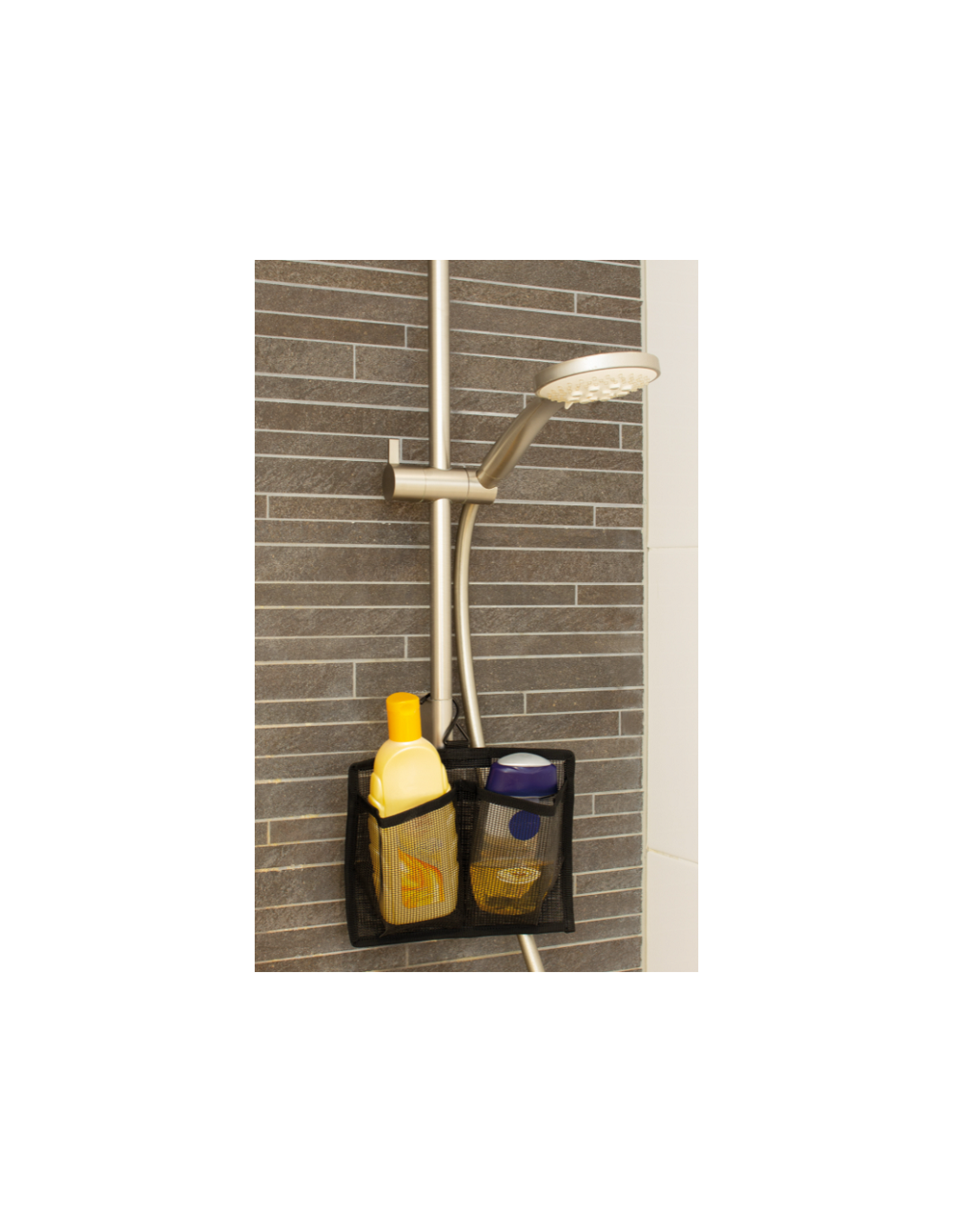 Trousse de toilette et de douche d'intérieur Ce sac offre beaucoup d'espace de stockage et de polyvalence. Spécial pour tous vos articles de toilette et de douche. Le sac est en tissu PVC hydrofuge et est livré avec un sac de rangement. Filet intérieur amovible que vous pouvez utiliser sous la douche. Avec le crochet, vous pouvez accrocher le sac de douche n'importe où. Les poches en filet facilitent le rangement de tous vos articles de toilette. Idéal pour une utilisation en camping ou en week-end ! Dimensions : 24 x 25 x 10 cm. Tissu : 100 % polyester PVC. Poids : 383 grammes.