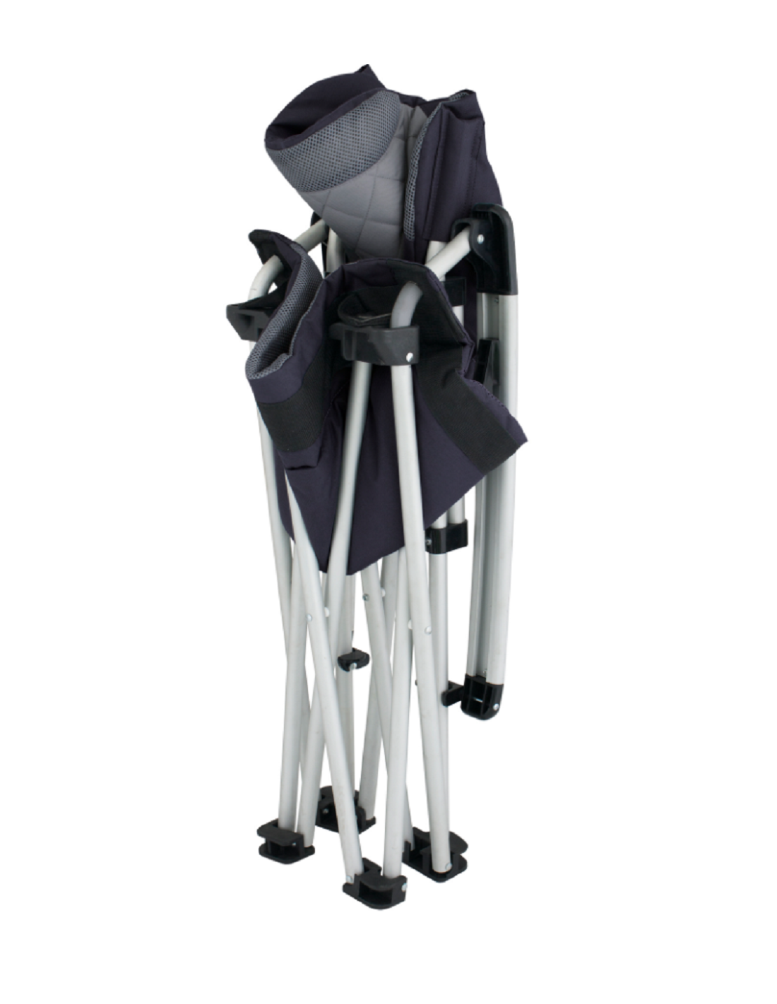 Chaise de camping pliante avec siège et dossier rembourrés.