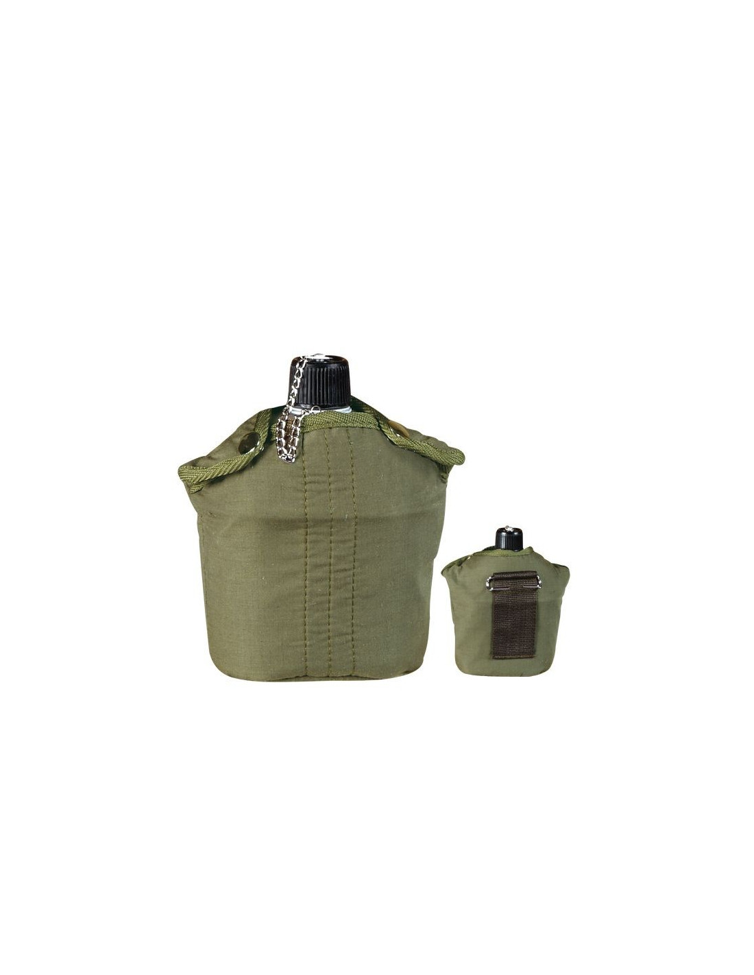 BOUTEILLE VERTE MILITAIRE AVEC BOUILLOIRE.