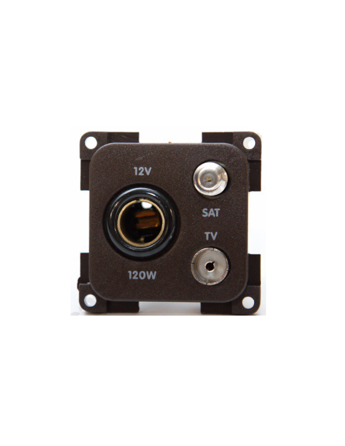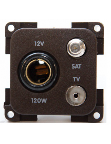 Prise de connexion intérieure 3 en 1. Satellite, 12v et TV Marron