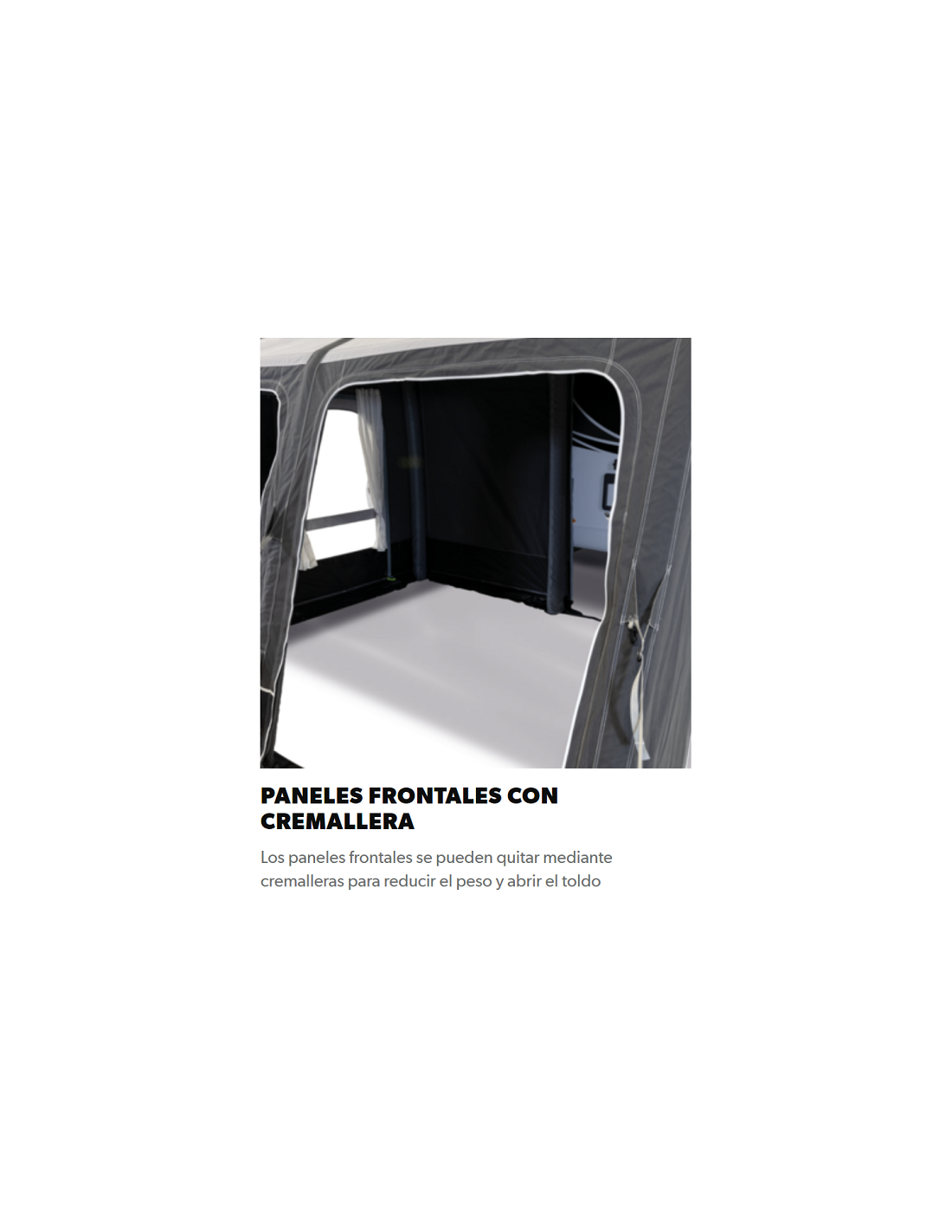 I pannelli frontali possono essere aperti con cerniera per ridurre il peso e aprire la tenda.