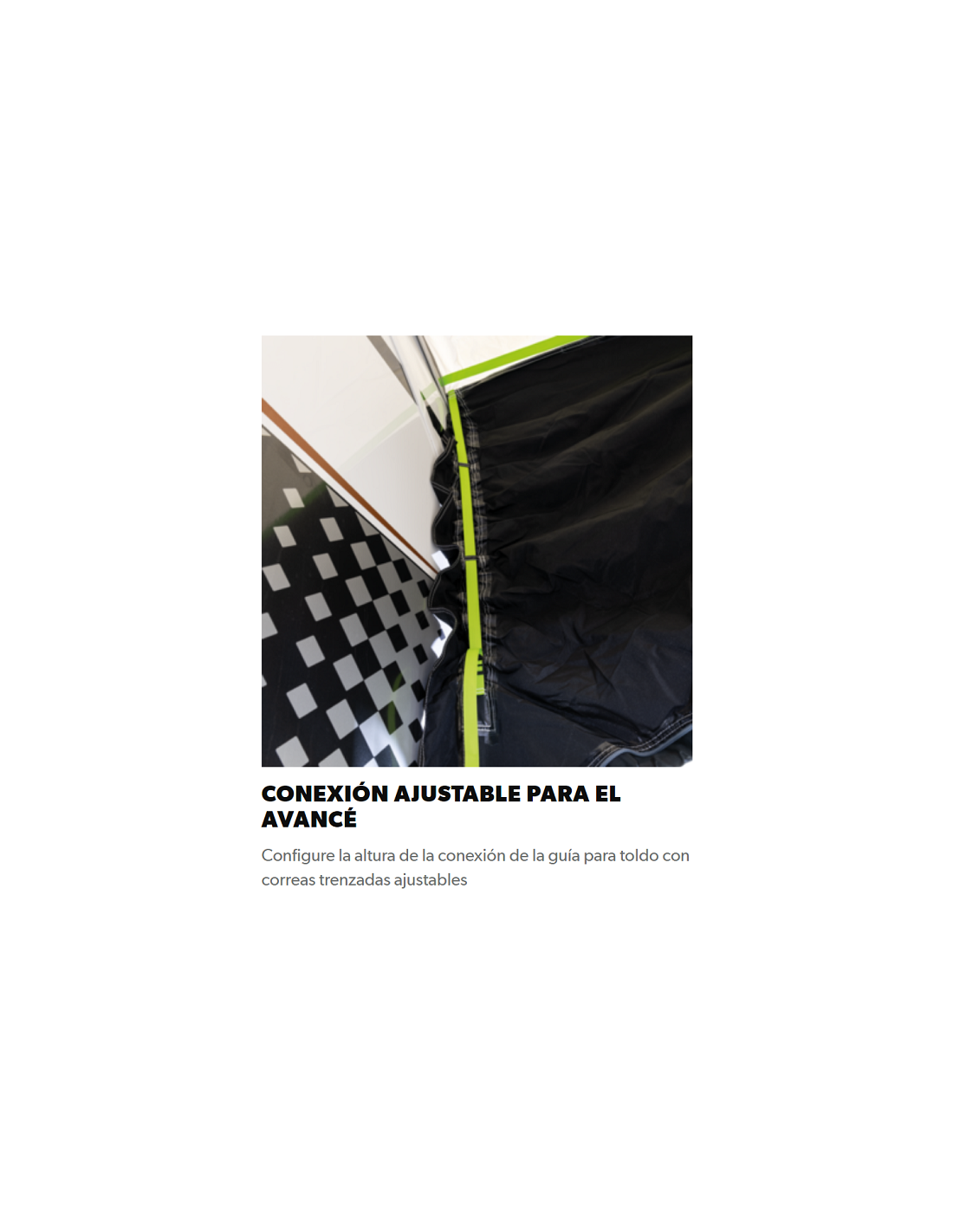 Configurare l'altezza del tunnel di collegamento tenda con cinghie regolabili.