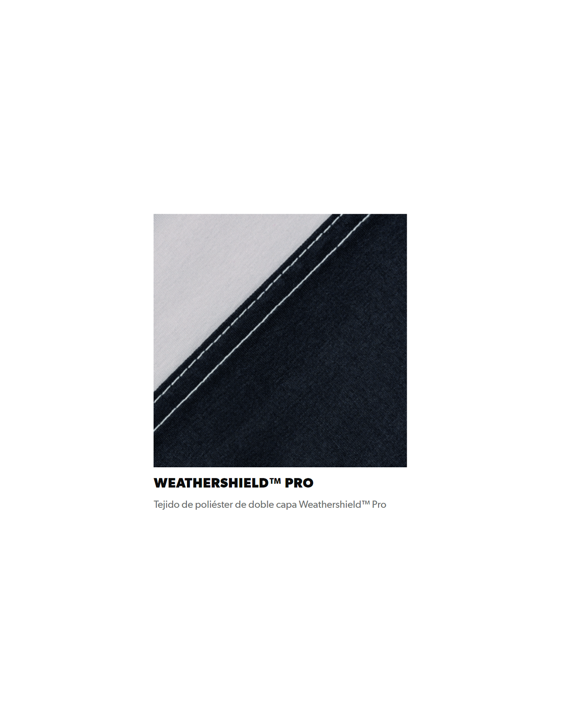 Tessuto in poliestere a doppio strato Weathershield TM Pro.