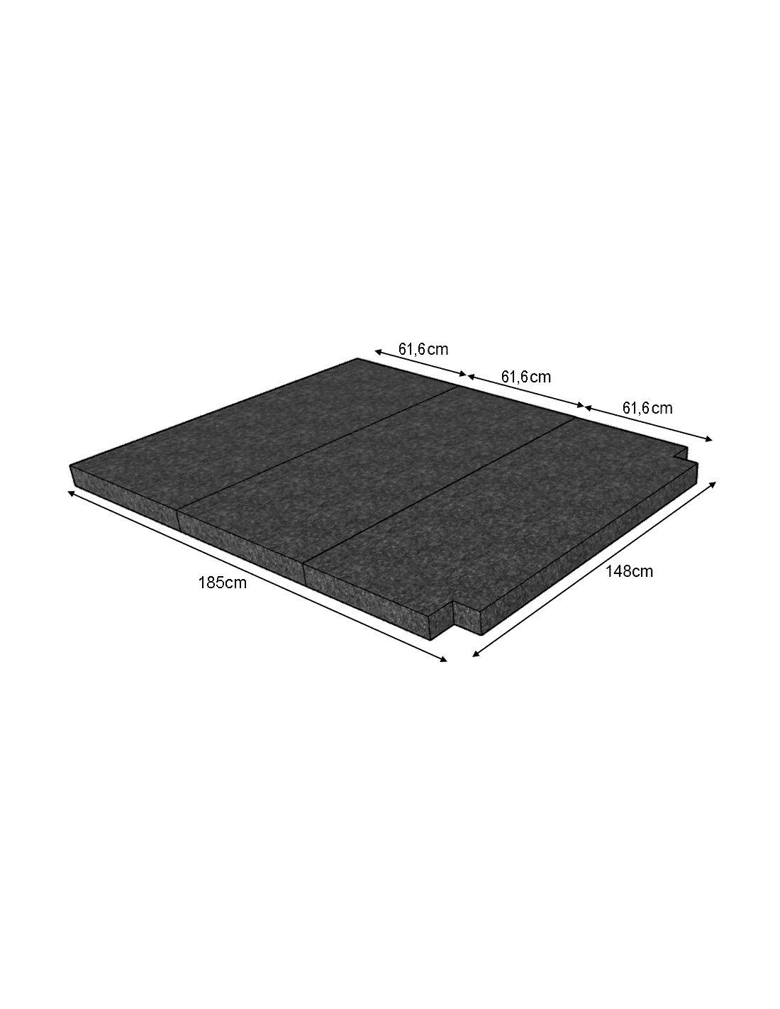 È un materasso a 3 pezzi molto facile da trasportare e conservare con schiuma in poliuretano da 8 cm (25kg/m3) per maggiore fermezza.