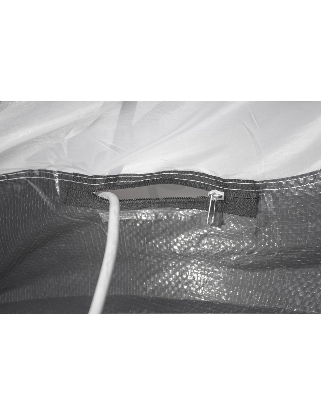 Realizzato in tessuto poliestere 190T e rivestimento in poliuretano, offre una colonna d'acqua di 3000 mm, mentre l'interno negozio utilizza poliestere traspirante. La base PE supporta fino a 6000 mm di colonna d'acqua, garantendo secchezza e comfort.