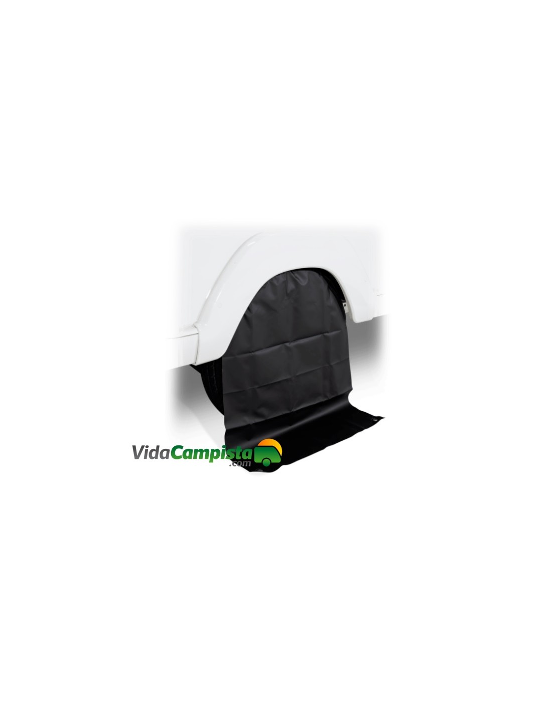 Custodia in PVC resistente che protegge la ruota della roulotte dai raggi UV e dallo sporco con occhielli di sicurezza.