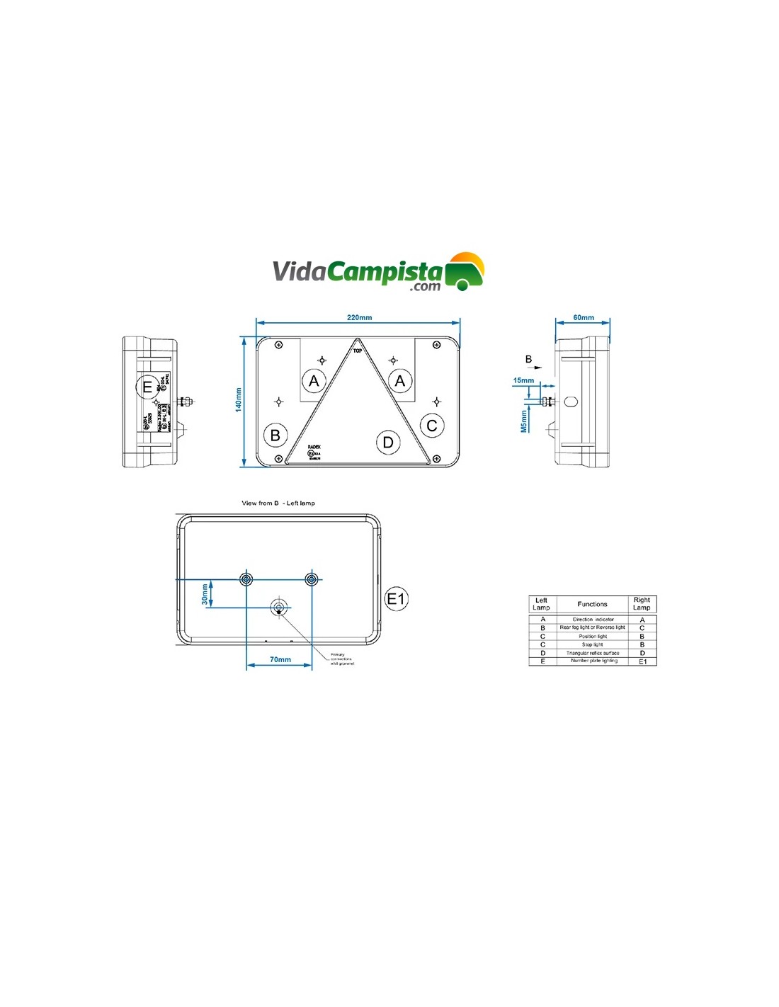 Caravan luce posteriore 5 funzioni 194x104mm destra. ProPlus