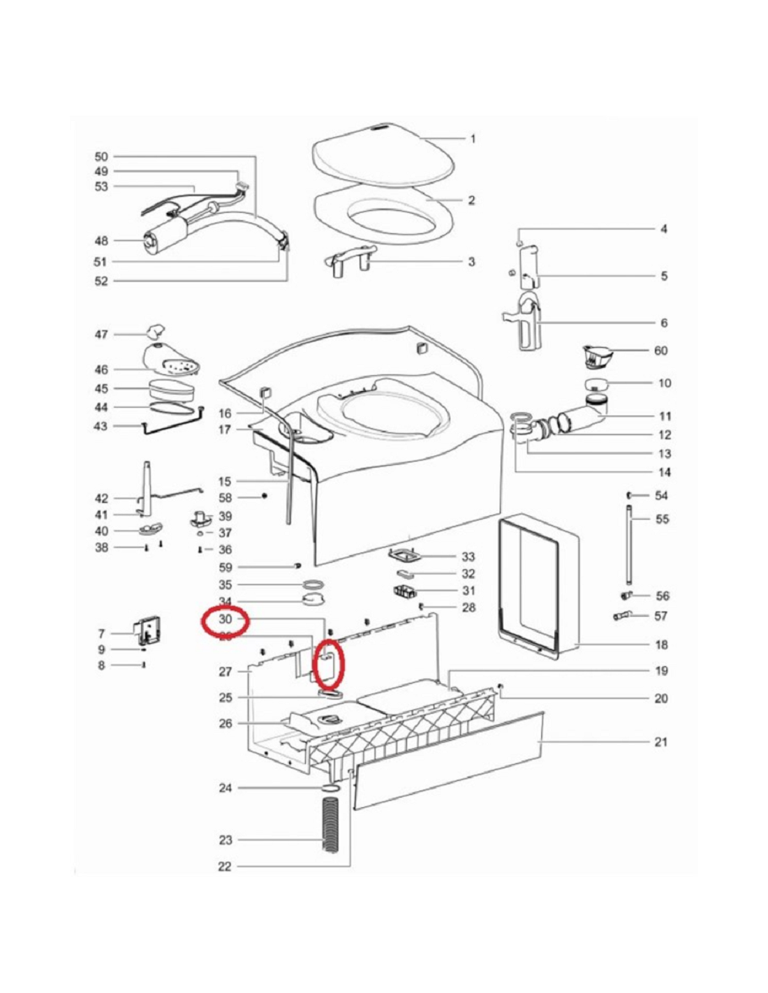 Pezzi di ricambio per cassette WC e camper