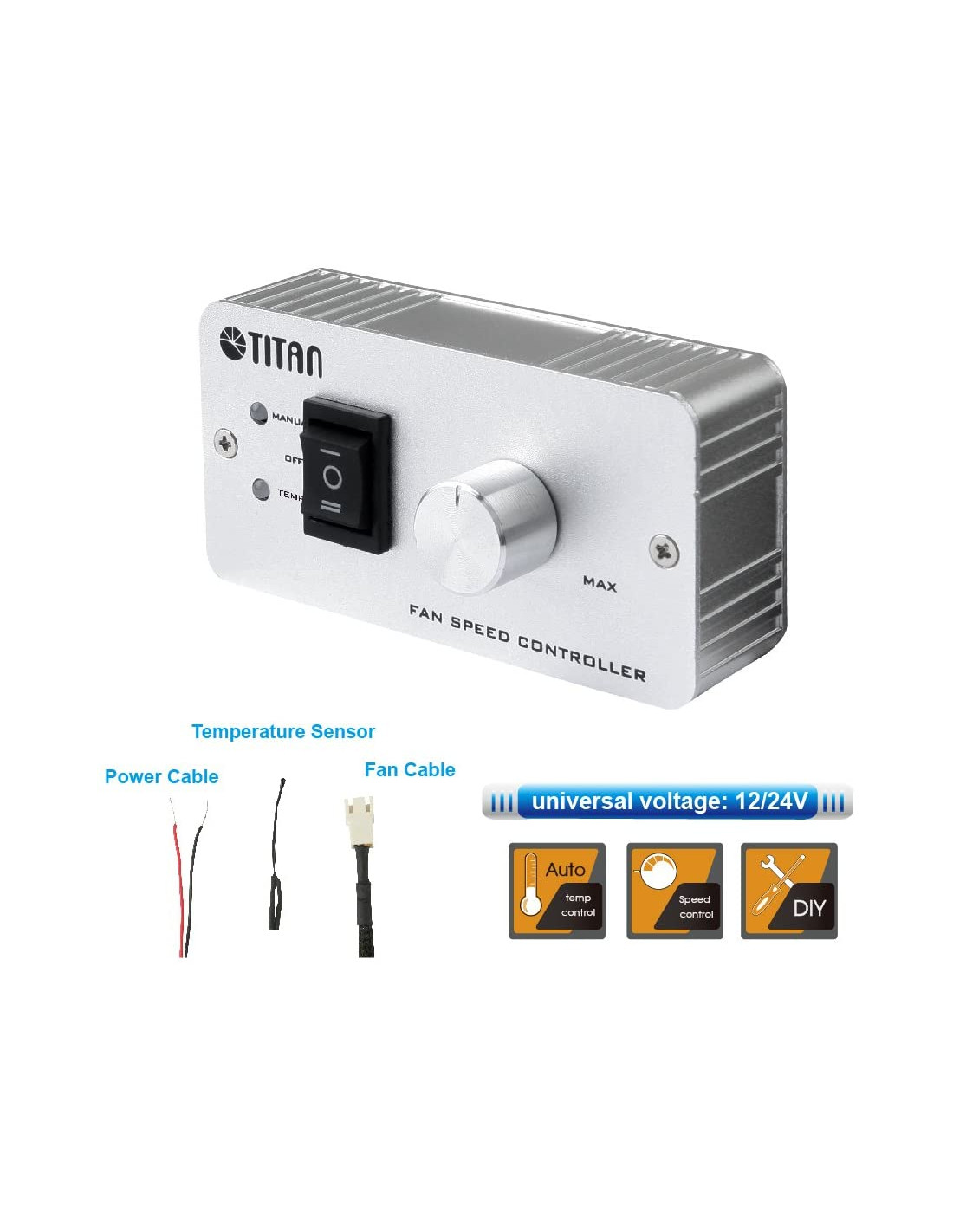 Para mejorar el rendimiento de la nevera en verano, es indispensable instalar un ventilador en la rejilla superior para aspirar el calor residual. Los dos ventiladores Titán de 12 cm son extremadamente potentes, ultra-silenciosos y garantizan un funcionamiento fiable y preciso. Unidad de control remota en aluminio que permite regular la temperatura y escoger entre funcionamiento manual o automático.