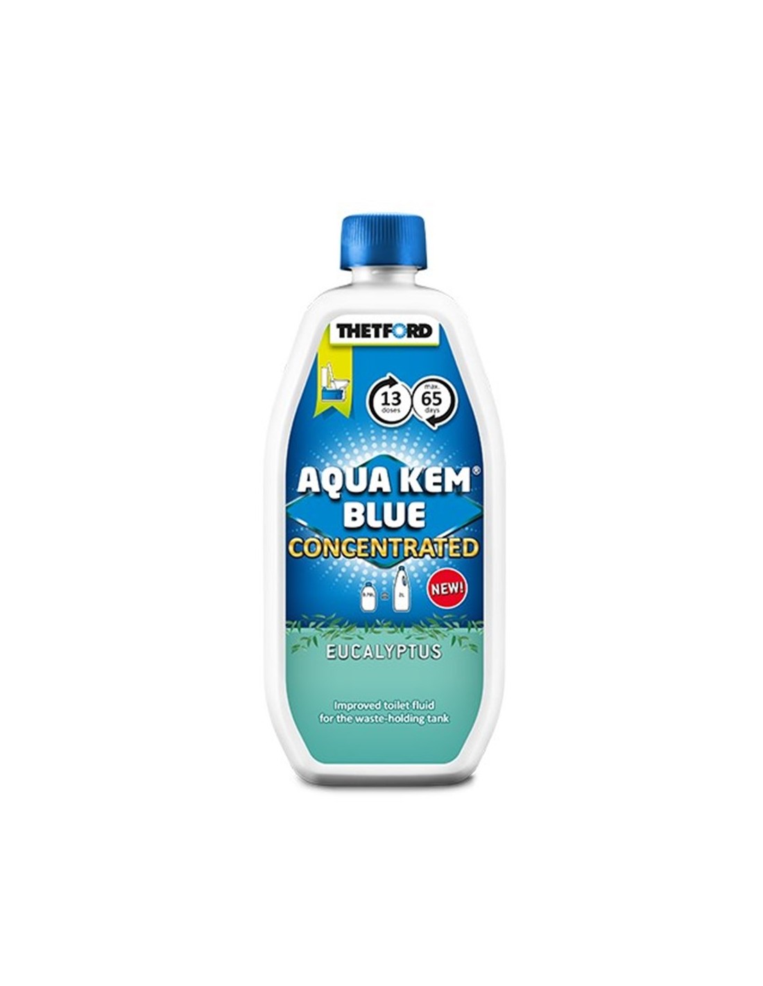 Autentico Aqua Kem Blu con aroma di Eucalyptus Liquid Thetford 0.78 litri concentrati con un odore fresco per servizi igienici portatili per lo stoccaggio di residui di caravan e camper.