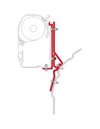 Questo adattatore permette di fissare la tenda Fiamma F45 a una Volkswagen T4 o un tetto di sollevamento Volkswagen T4 (tecnologia elevata)