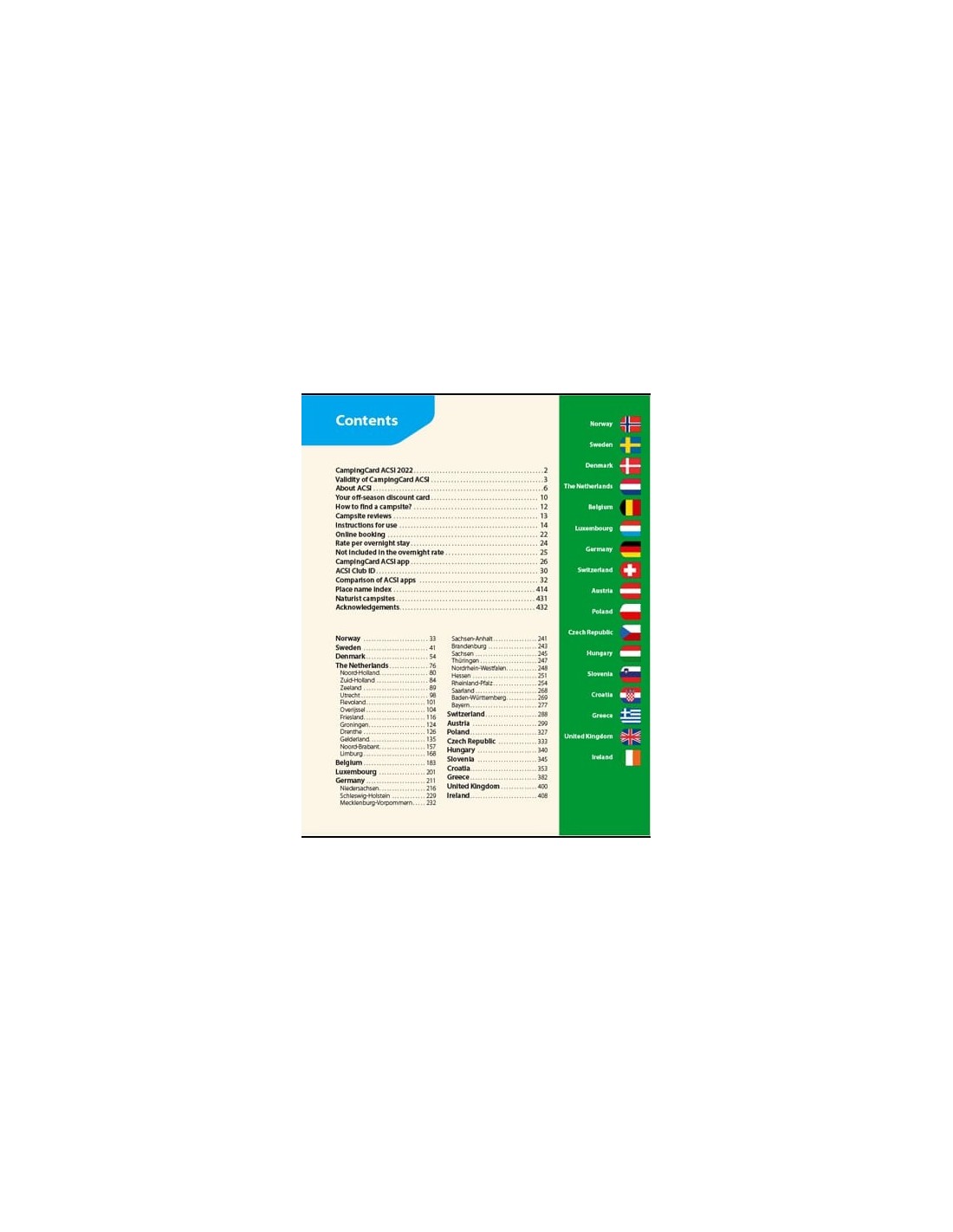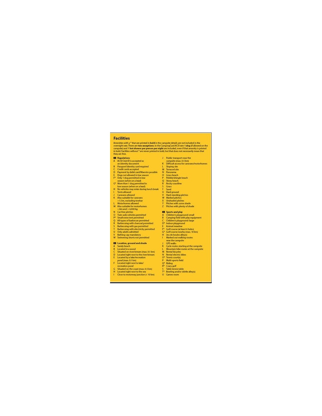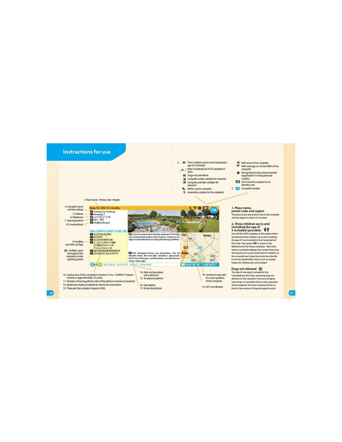 La guida inclusa fornisce coordinate gPS per una navigazione precisa e un mini atlante dettagliato. Esplora l'Europa economicamente e comodamente con CampingCard ACSI.