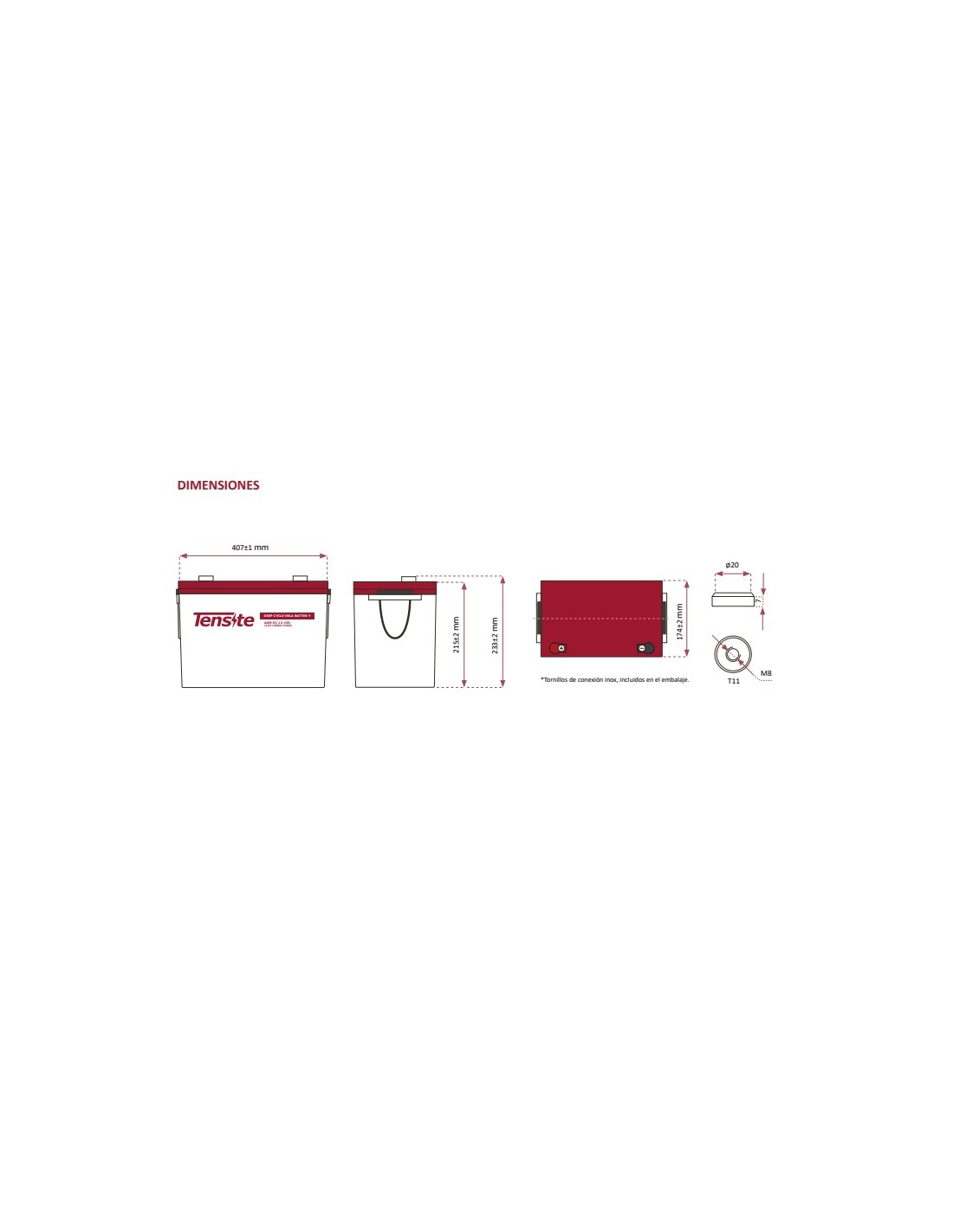 Disegno tecnico della batteria AGM 150Ah Tensite: