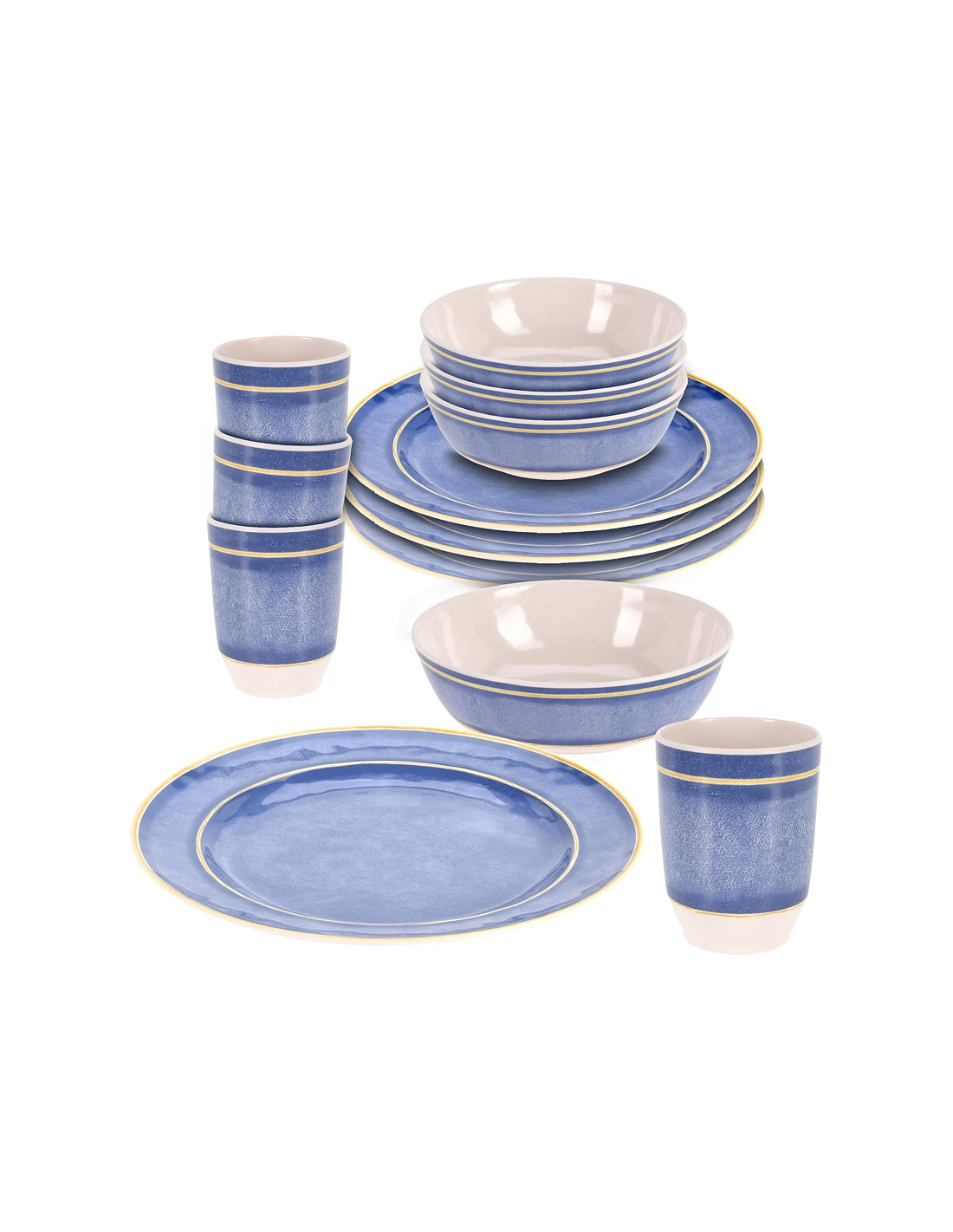 Set di stoviglie in melamina blu mix da 16 pezzi.Bo-Camp