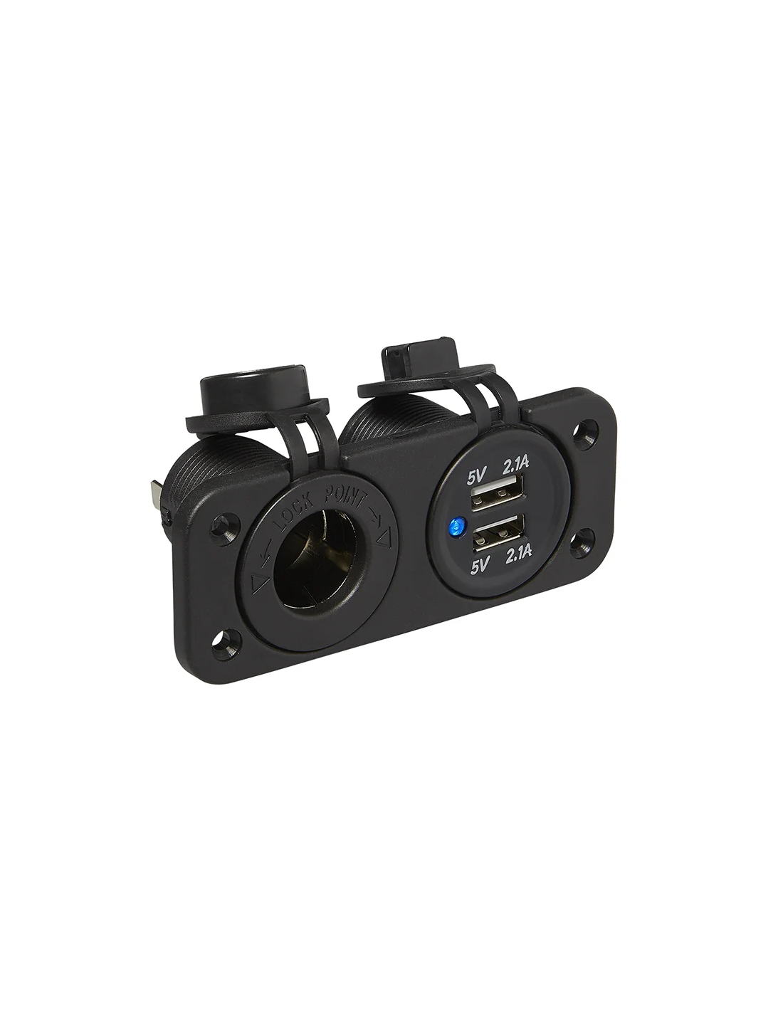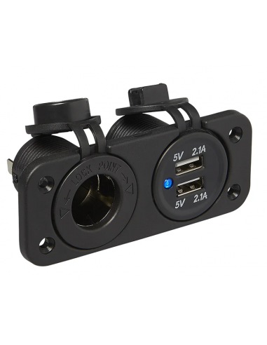 Dotato di una 12V e due porte usb con indicatore di carico LED