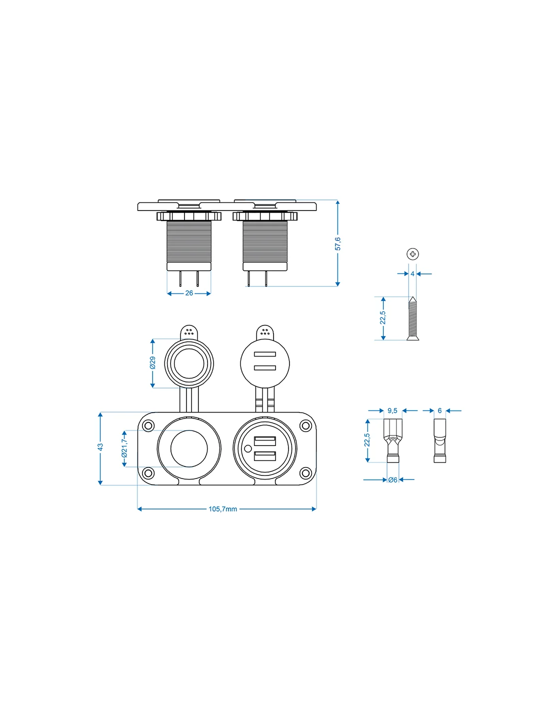 Kit da incasso con porte USB e presa 12V