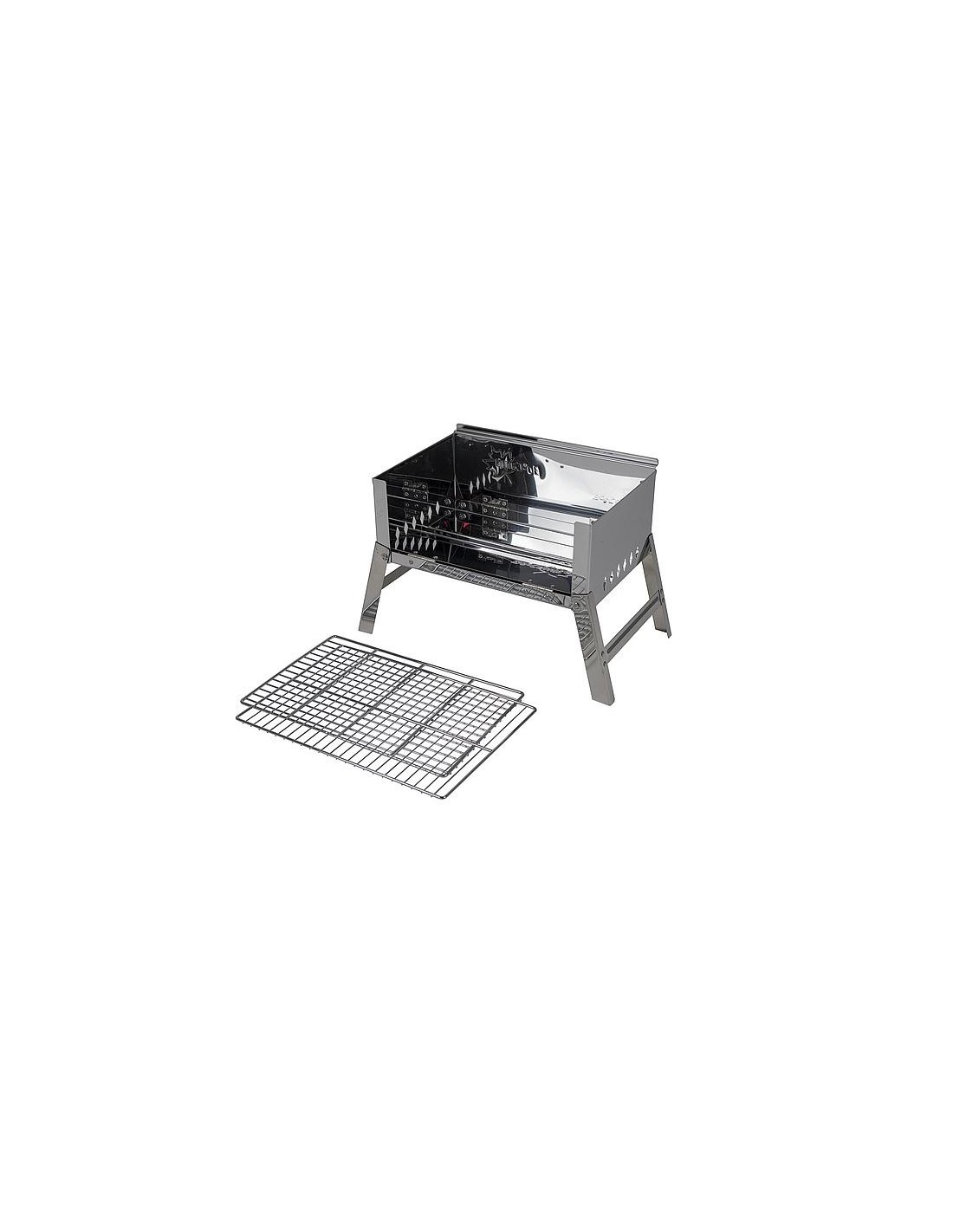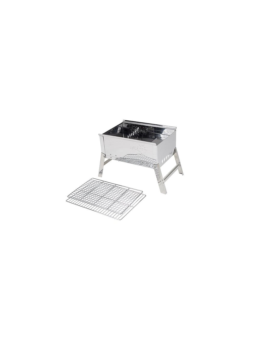 Un barbecue in acciaio inossidabile compatto e pieghevole.