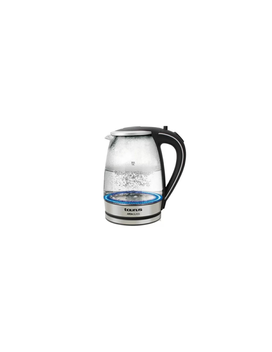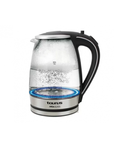 La brocca di vetro Aroa Glass ha 1,8 litri di capacità e indicatore d'acqua con illuminazione alla base. Caratteristica ideale per poter bollire la quantità desiderata di acqua in ogni momento.