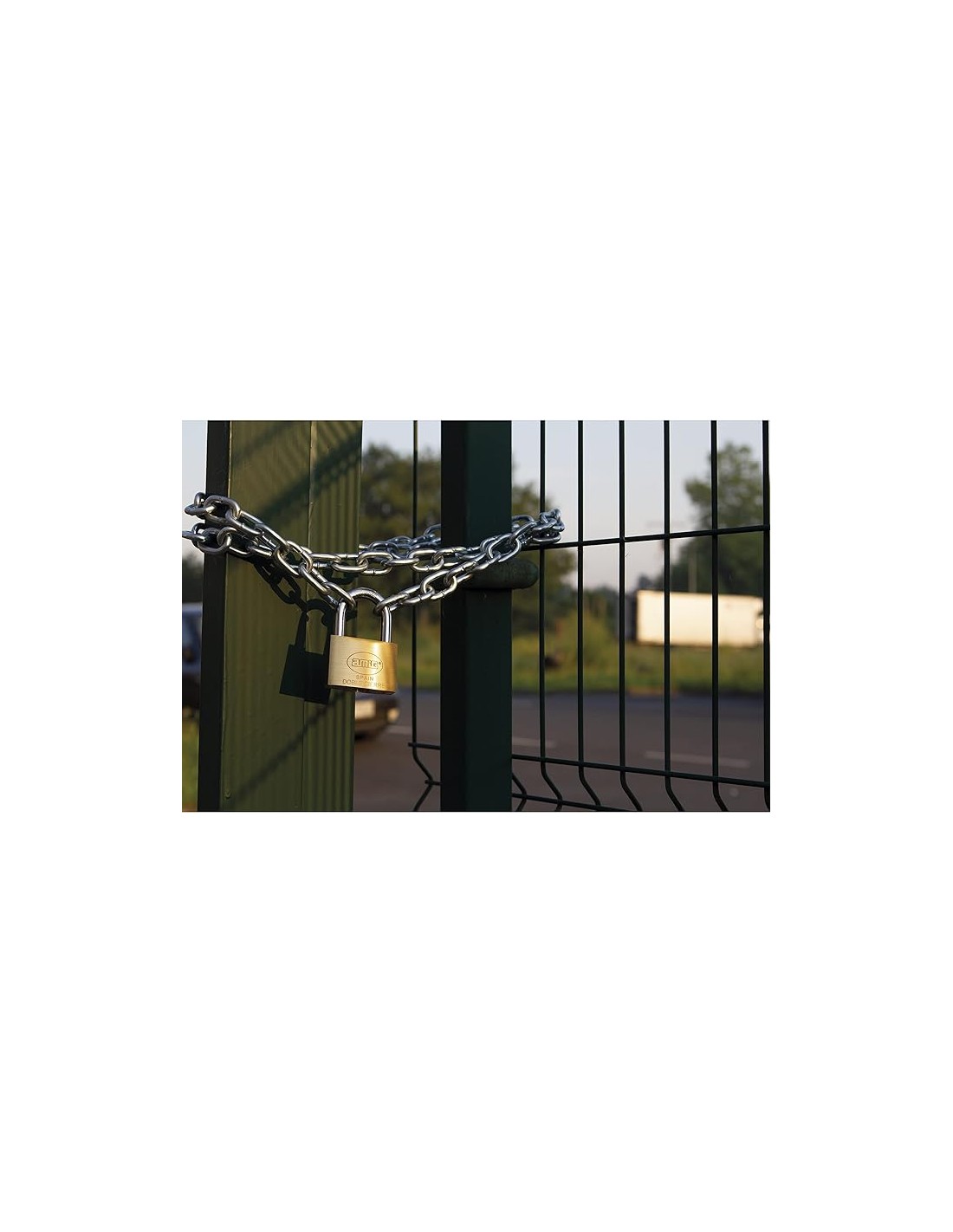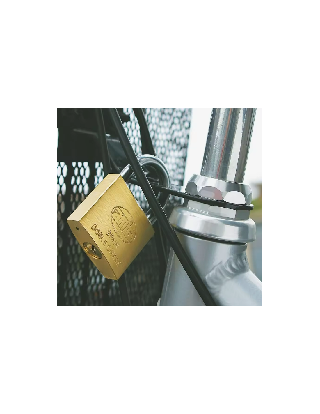 È realizzato in ottone con arco normale trattato in acciaio. E' una serratura ad arco sicura.