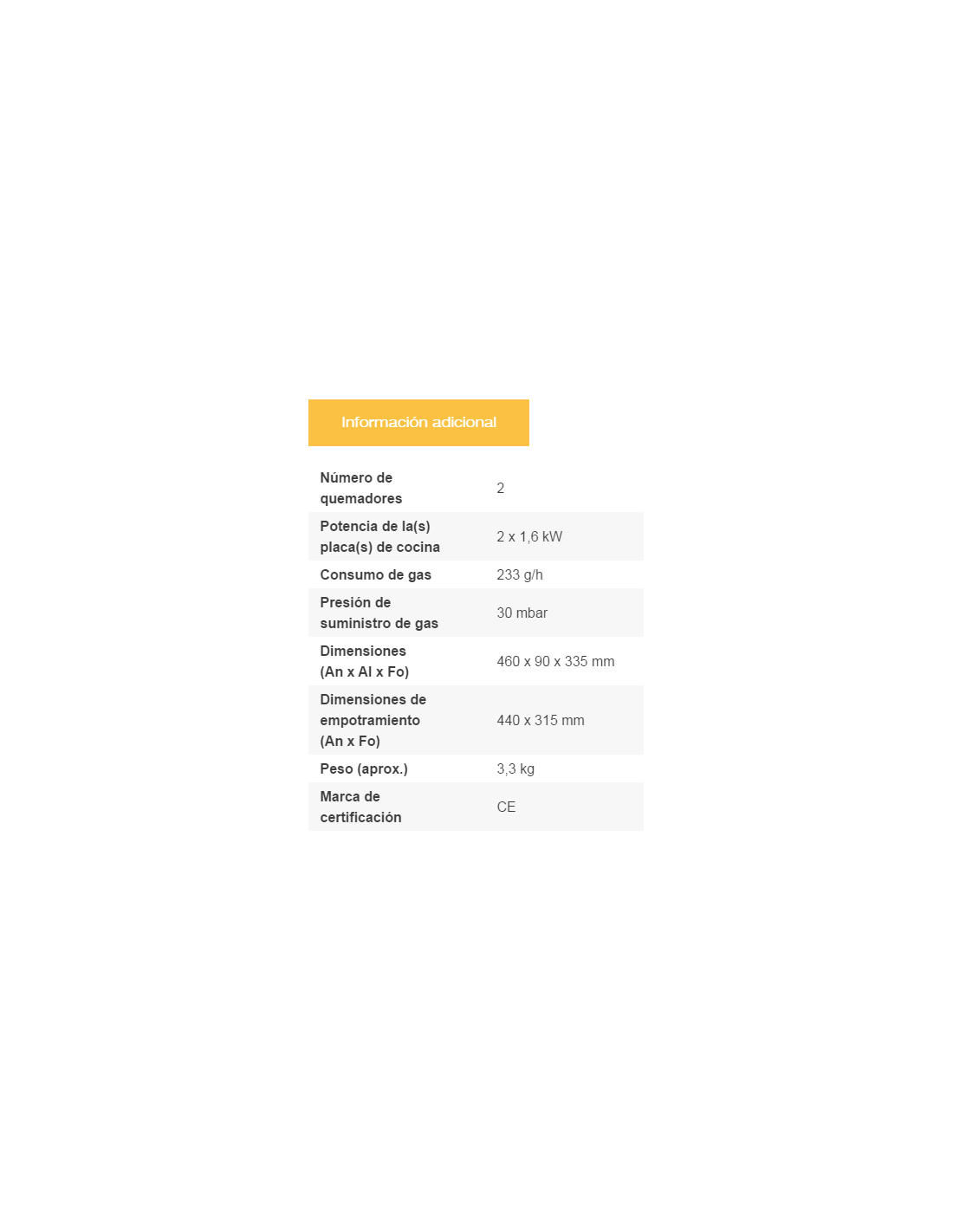 - Consumo di gas: 233g/h